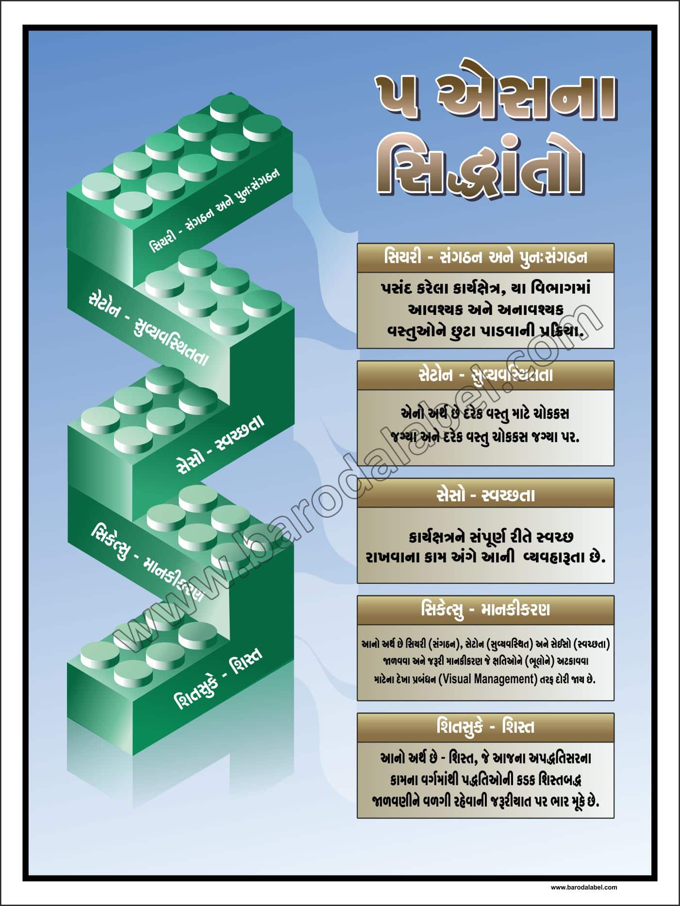 5 S Na Siddhanto (Gujarati) Vinyl printed sticker, Digitally printed available with or without lamination