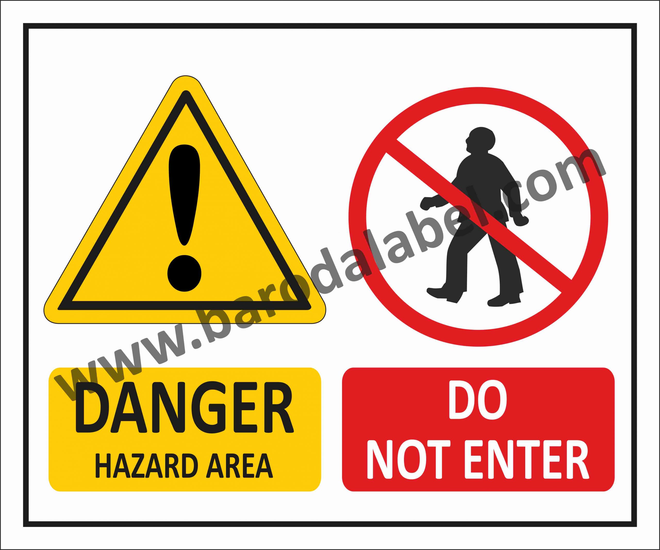 DANGER HAZARD AREA DO NOT ENTER Vinyl printed sticker, Digitally printed available with or without lamination film pasted on 5 mm thick PVC Sunboard or 3 mm thick ACP Sheet. Sunboard signage with 4 eyelets or ACP signage with 4 holes provided for fixing.