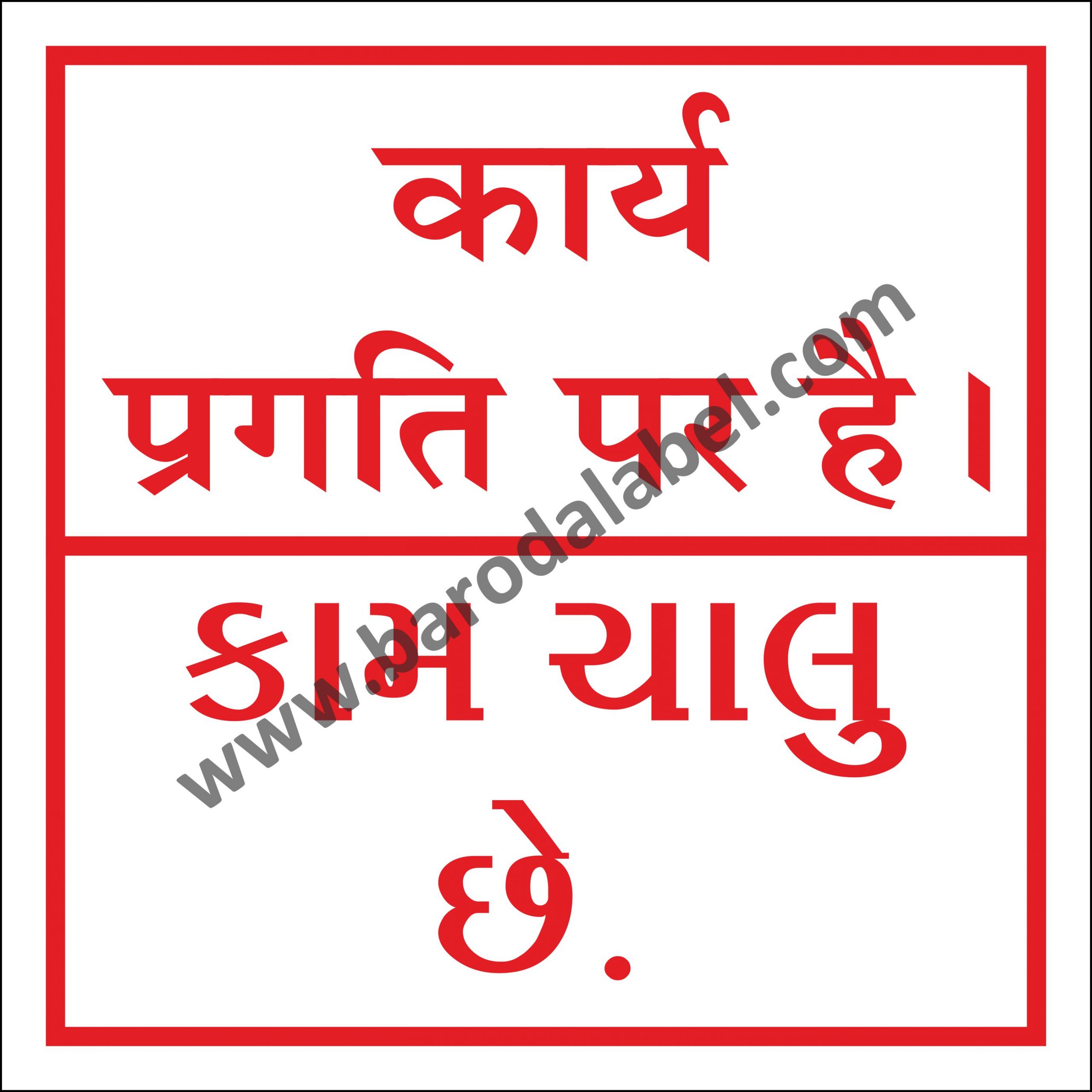 KAM PRAGATI PAR HAI Vinyl printed sticker, Digitally printed available with or without lamination film pasted on 5 mm thick PVC sunboard or 3 mm thick ACP (Aluminum Composite Panel) Sheet. Sunboard signage with 4 eyelets or ACP signage with 4 holes provided for fixing.
