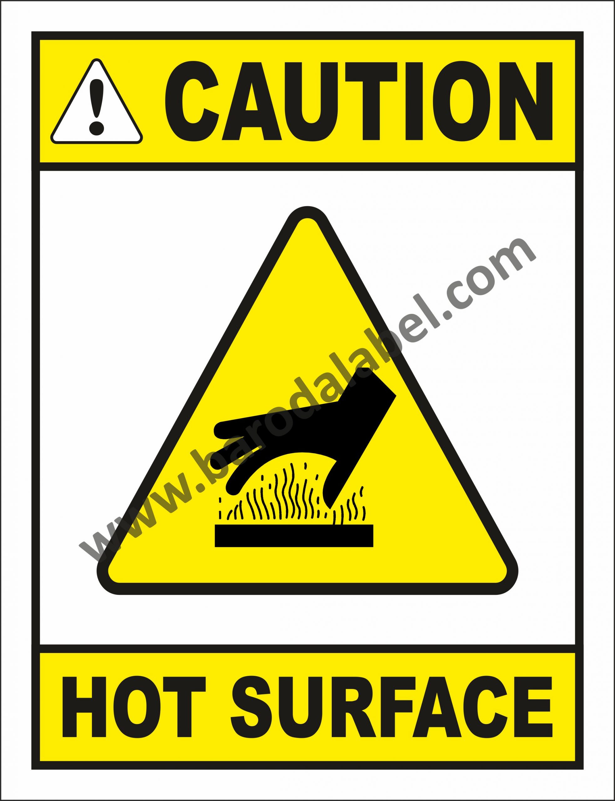 CAUTION HOT SURFACE Vinyl printed sticker, Digital printed available with or without lamination film pasted on 5 mm thick PVC sunboard or 3 mm thick ACP (Aluminium Composite Panel) Sheet. Sunboard signage with 4 eyelets or ACP signage with 4 holes provided for fixing.