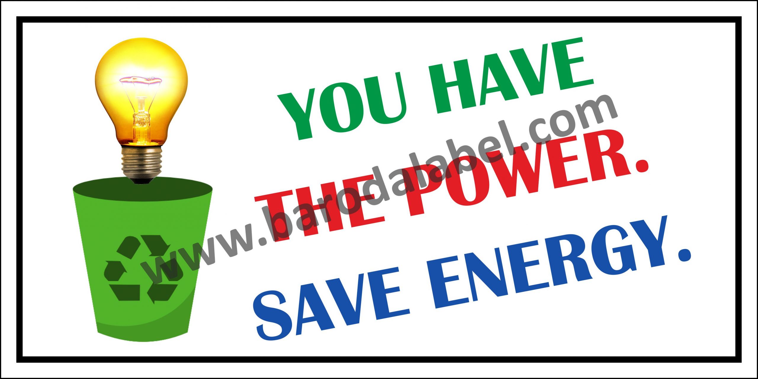 YOU HAVE THE POWER. SAVE ENERGY. Vinyl printed sticker, Digital printed available with or without lamination film pasted on 5 mm thick PVC sunboard or 3 mm thick ACP (Aluminum Composite Panel)