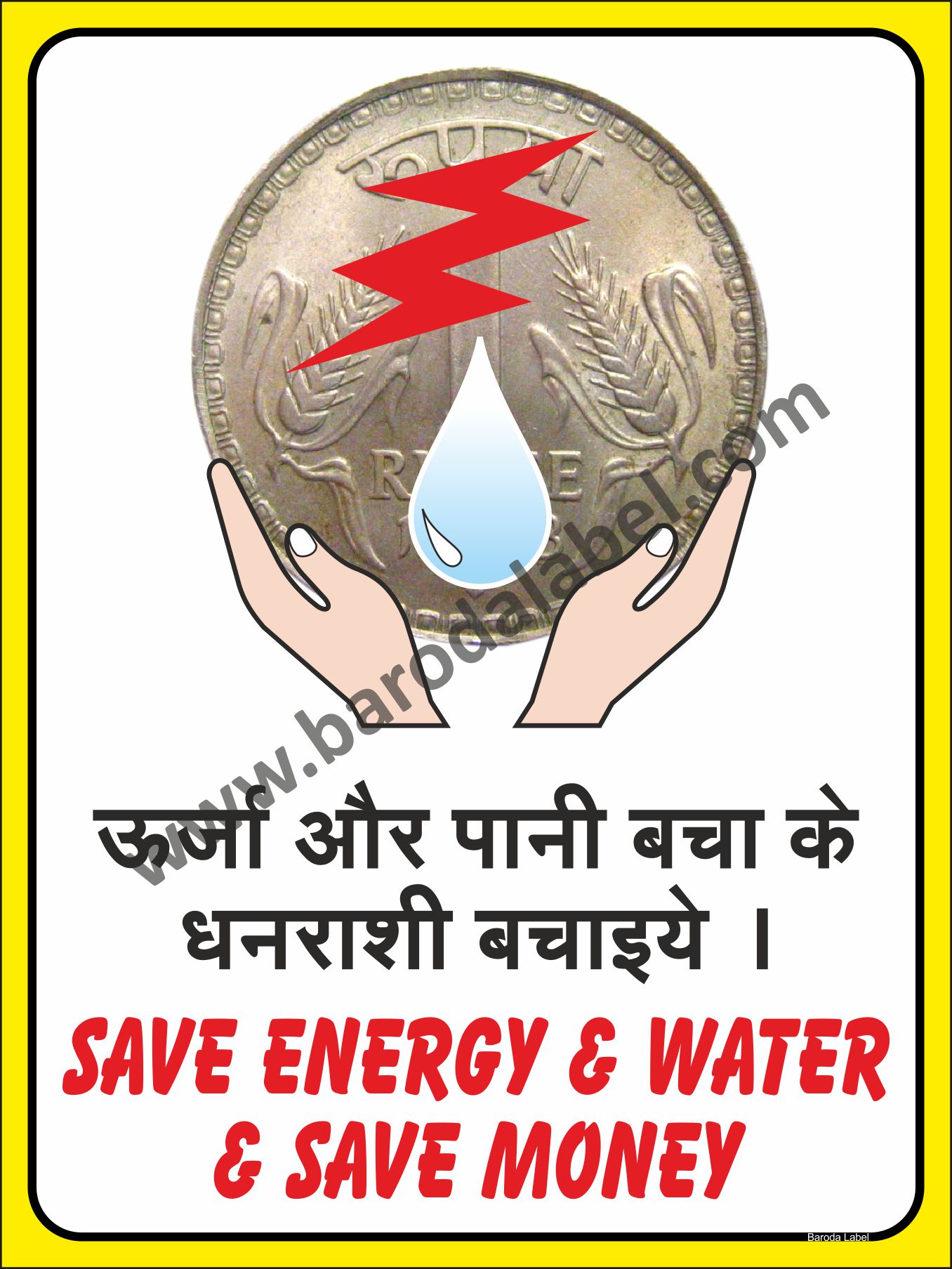 SAVE ENERGY & WATER & SAVE MONEY Vinyl printed sticker, Digital printed available with or without lamination film pasted on 5 mm thick PVC sunboard or 3 mm thick ACP (Aluminium Composite Panel) Sheet. Sunboard signage with 4 eyelets or ACP signage with 4 holes provided for fixing.