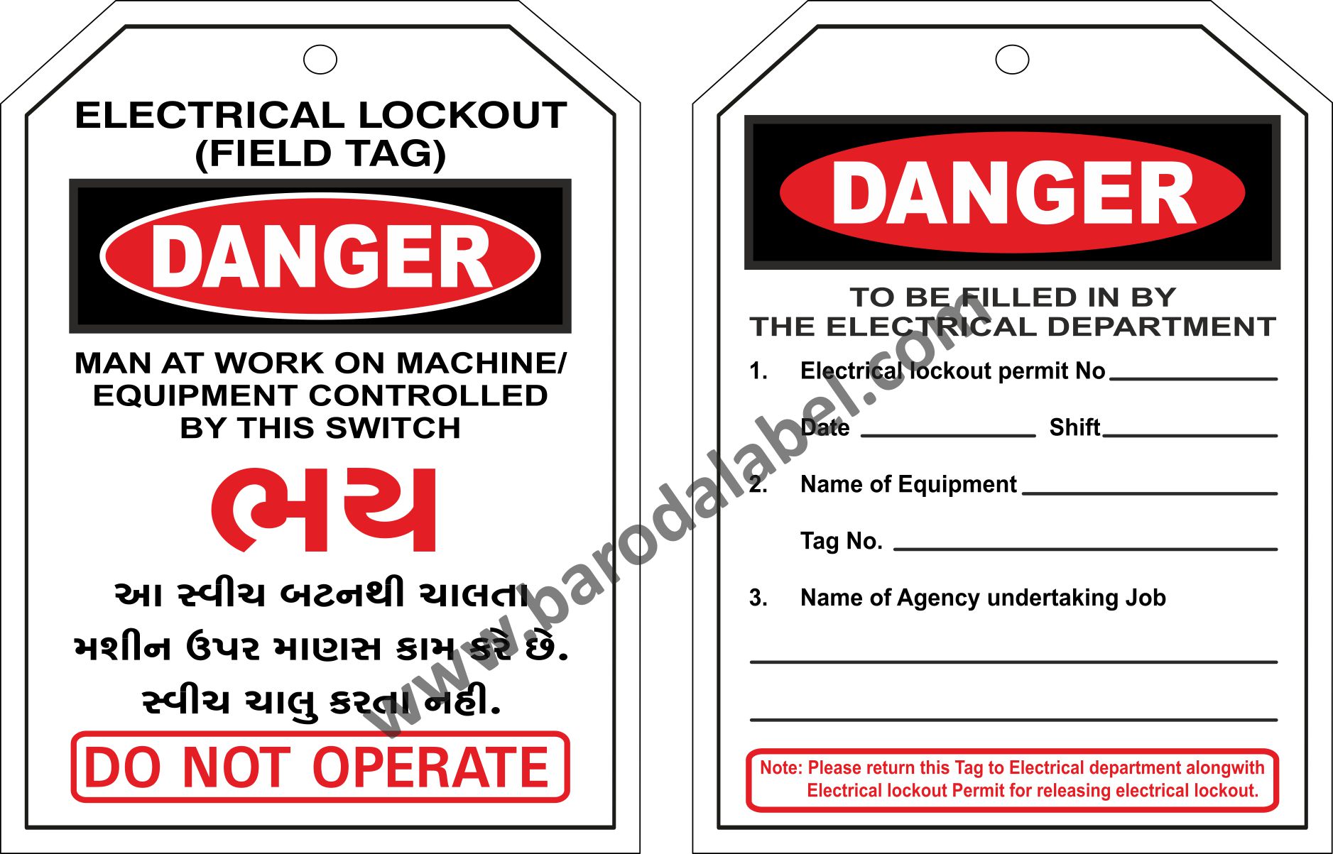 DANGER BHAY ELECTRICAL LOCK OUT