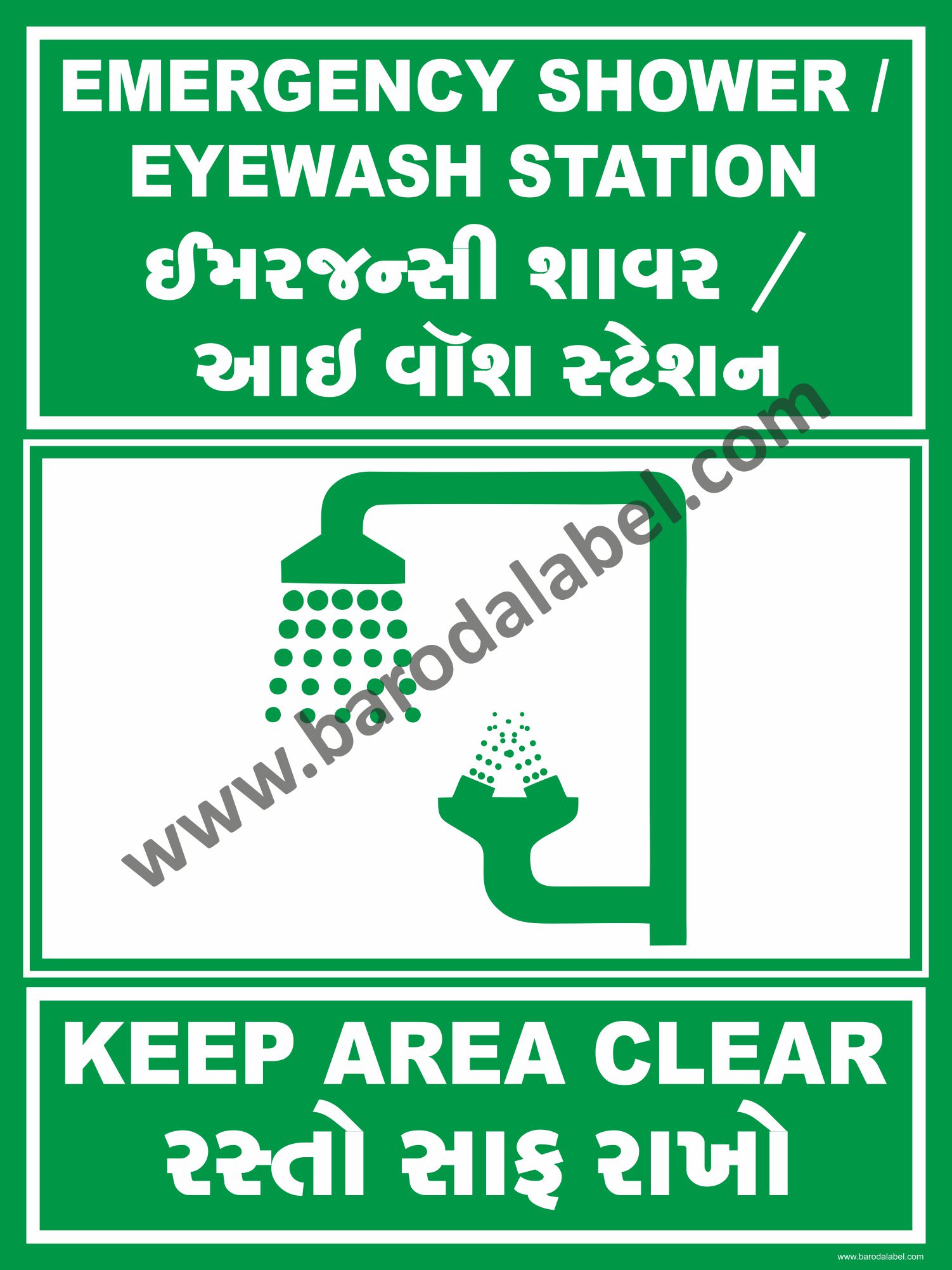 EMERGENCY SHOWER / EYEWASH STATION. Vinyl printed sticker, Digital printed available with or without lamination film pasted on 5 mm thick PVC sunboard or 3 mm thick ACP (Aluminum Composite Panel)