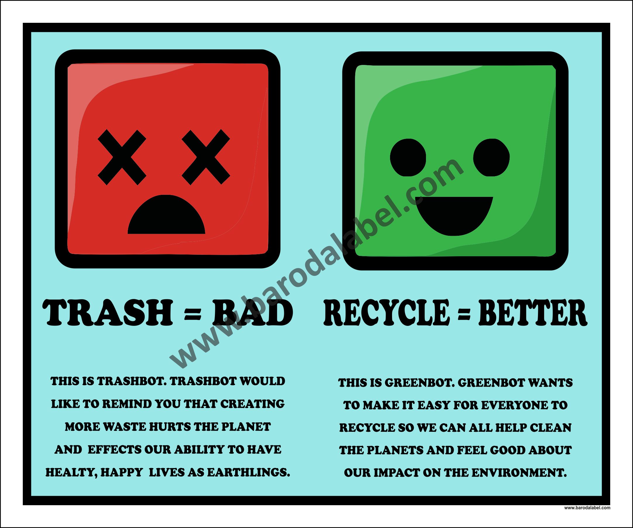 TRASH = BAD, RECYCLE = BETTER. Vinyl printed sticker, Digital printed available with or without lamination film pasted on 5 mm thick PVC sunboard or 3 mm thick ACP (Aluminum Composite Panel)