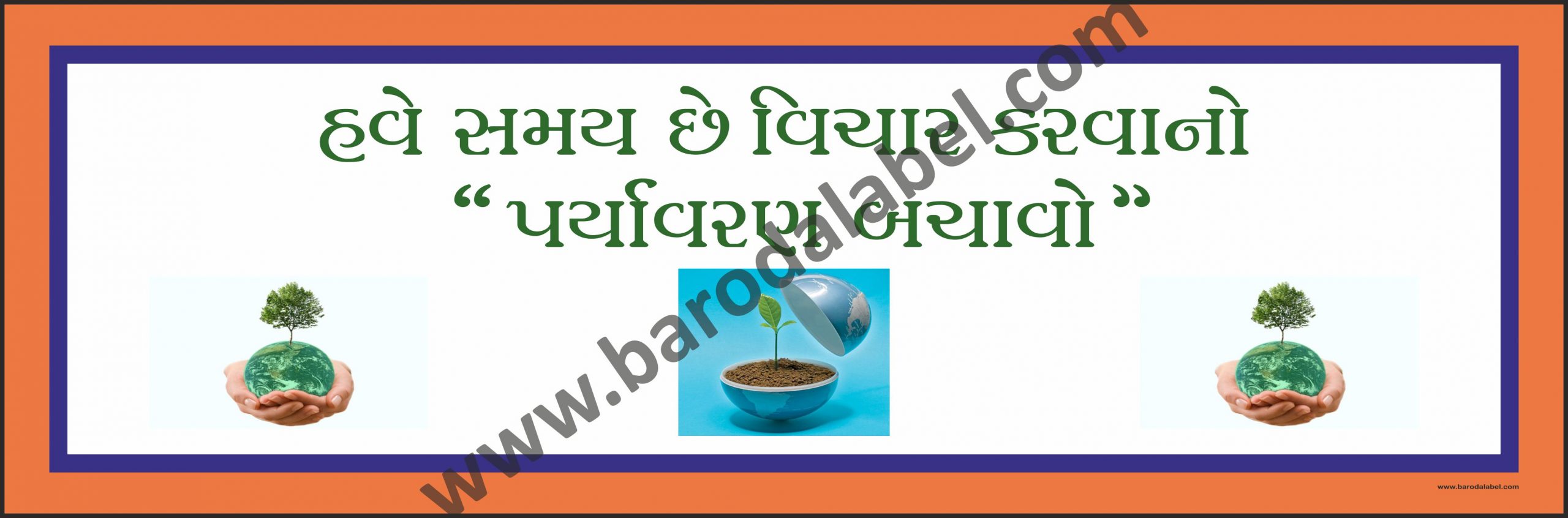 Have samay chhe vichar karvano “Paryavaran Bachavo” (Gujarati) Vinyl printed sticker, Digital printed available with or without lamination film pasted on 5 mm thick PVC sunboard or 3 mm thick ACP (Aluminum Composite Panel) Sheet. Sunboard signage with 4 eyelets or ACP signage with 4 holes provided for fixing.