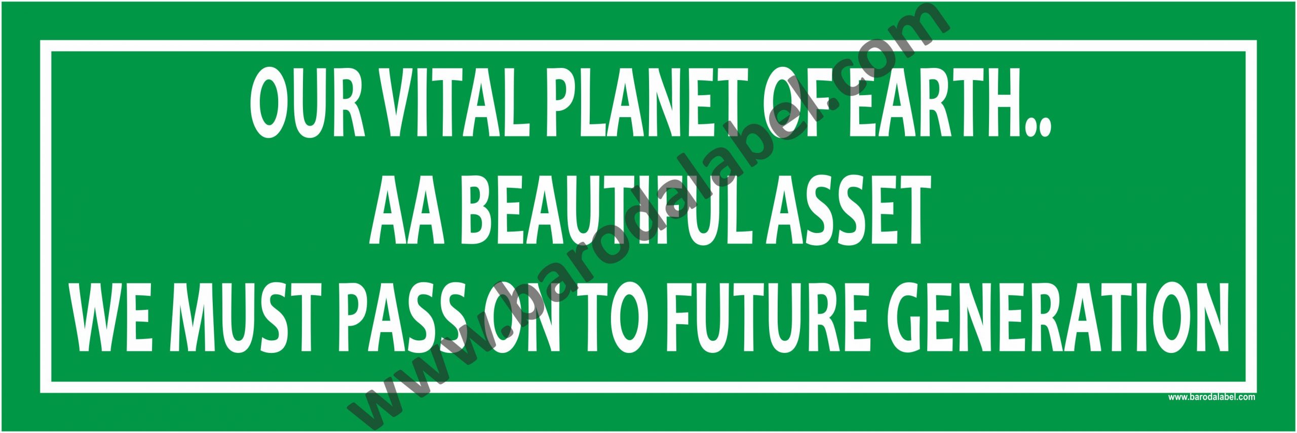 OUR VITAL PLANET OF EARTH A BEAUTIFUL ASSET WE MUST PASS ON TO FUTURE GENERATION.Vinyl printed sticker, Digital printed available with or without lamination film pasted on 5 mm thick PVC sunboard or 3 mm thick ACP (Aluminum Composite Panel) Sheet. Sunboard signage with 4 eyelets or ACP signage with 4 holes provided for fixing.