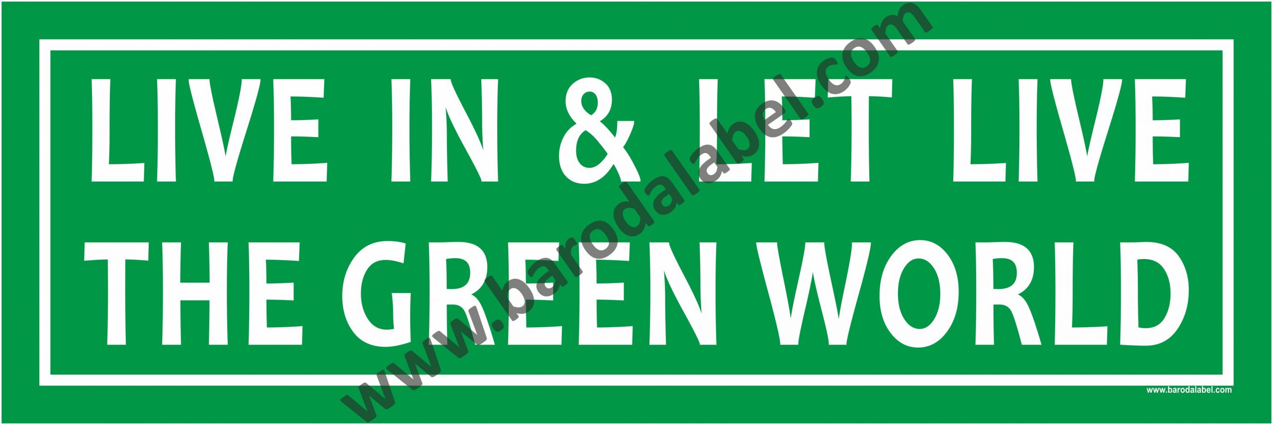 LIVE IN & LET LIVE THE GREEN WORLD.Vinyl printed sticker, Digital printed available with or without lamination film pasted on 5 mm thick PVC sunboard or 3 mm thick ACP (Aluminum Composite Panel)