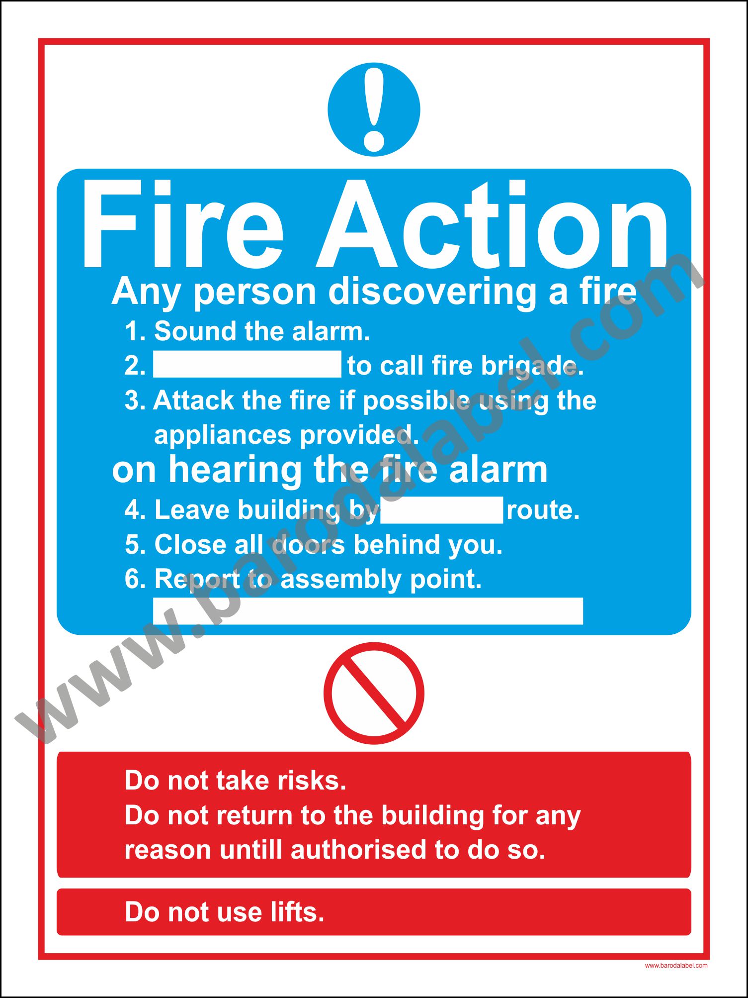 FIRE ACTON Vinyl printed sticker, Digitally printed available with or without lamination film pasted on 5 mm thick PVC Sunboard or 3 mm thick ACP Sheet.Sunboard signage with 4 eyelets or ACP signage with 4 holes provided for fixing.