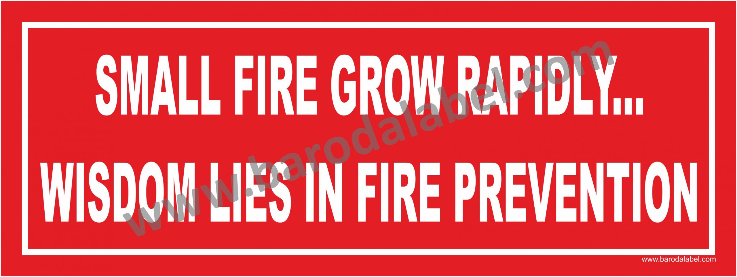 SMALL FIRE GROW REPIDLY..WISDOM LIES IN FIRE PRIVANTION. Vinyl printed sticker, Digitally printed available with or without lamination film pasted on 5 mm thick PVC Sunboard or 3 mm thick ACP Sheet.