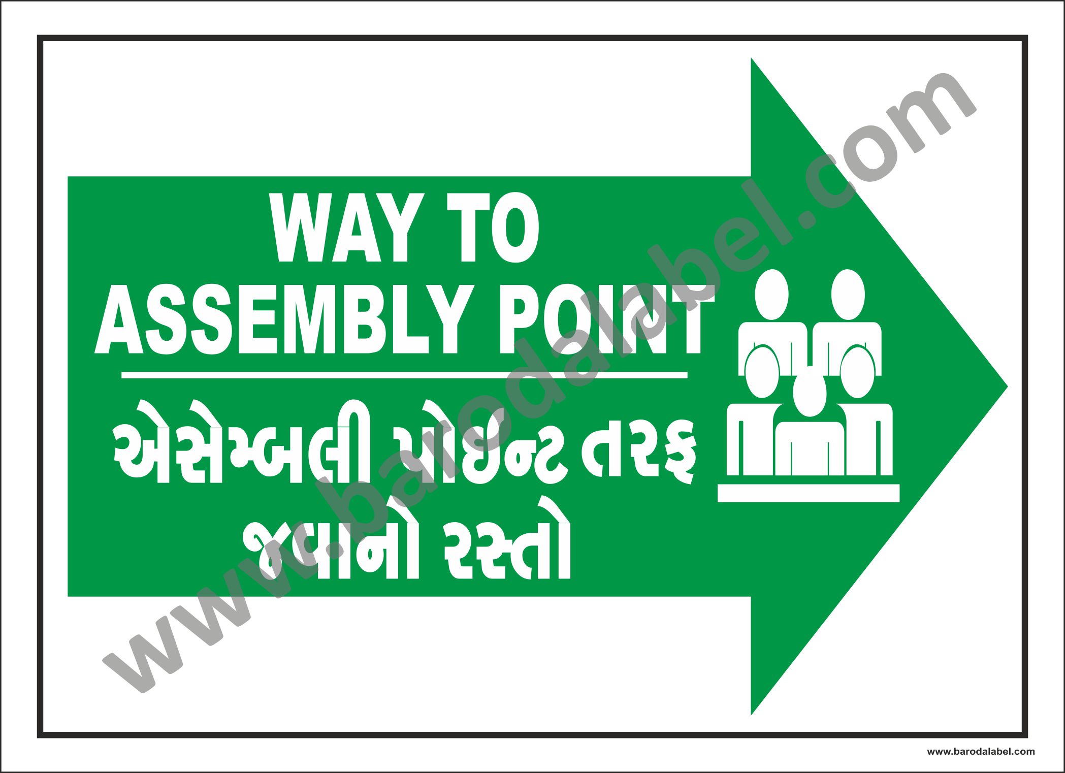WAY TO ASSEMBLY POINT (RIGHT SIDE) Vinyl printed sticker, Digitally printed available with or without lamination film pasted on 5 mm thick PVC Sunboard or 3 mm thick ACP Sheet.Sunboard signage with 4 eyelets or ACP signage with 4 holes provided for fixing.