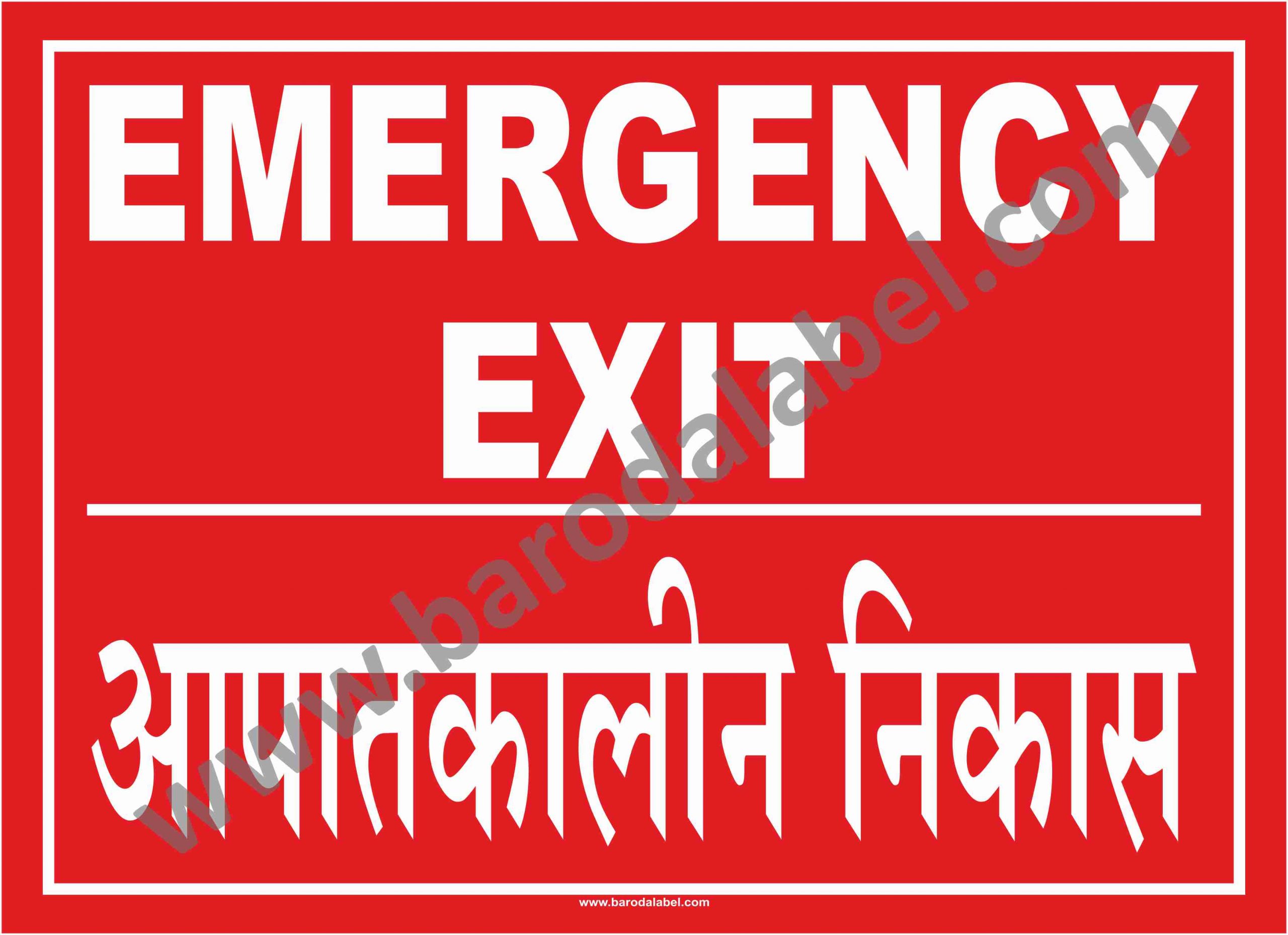 EMERGENCY EXIT Vinyl printed sticker, Digitally printed available with or without lamination film pasted on 5 mm thick PVC Sunboard or 3 mm thick ACP Sheet. Sunboard signage with 4 eyelets or ACP signage with 4 holes provided for fixing.
