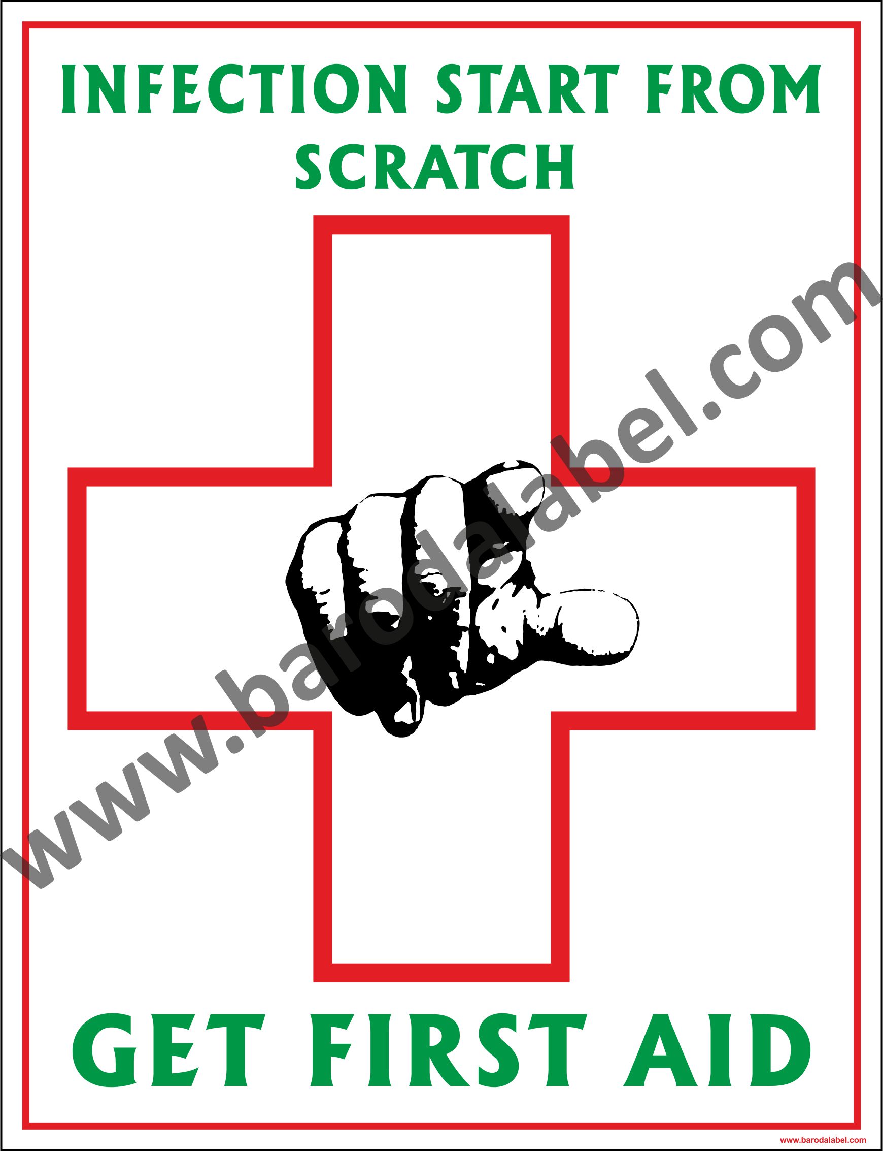 INFECTION START FROM SCRATCH GET FIRST AID Vinyl printed sticker, Digitally printed available with or without lamination film pasted on 5 mm thick PVC sunboard or 3 mm thick ACP (Aluminum Composite Panel) Sheet. Sunboard signage with 4 eyelets or ACP signage with 4 holes provided for fixing.