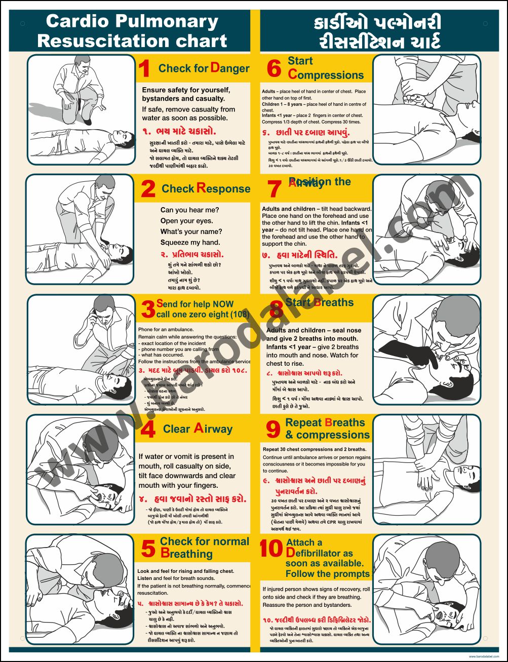 C.P.R. (English/Gujarati) Vinyl printed sticker, Digitally printed available with or without lamination film pasted on 5 mm thick PVC sunboard or 3 mm thick ACP (Aluminum Composite Panel) Sheet. Sunboard signage with 4 eyelets or ACP signage with 4 holes provided for fixing.