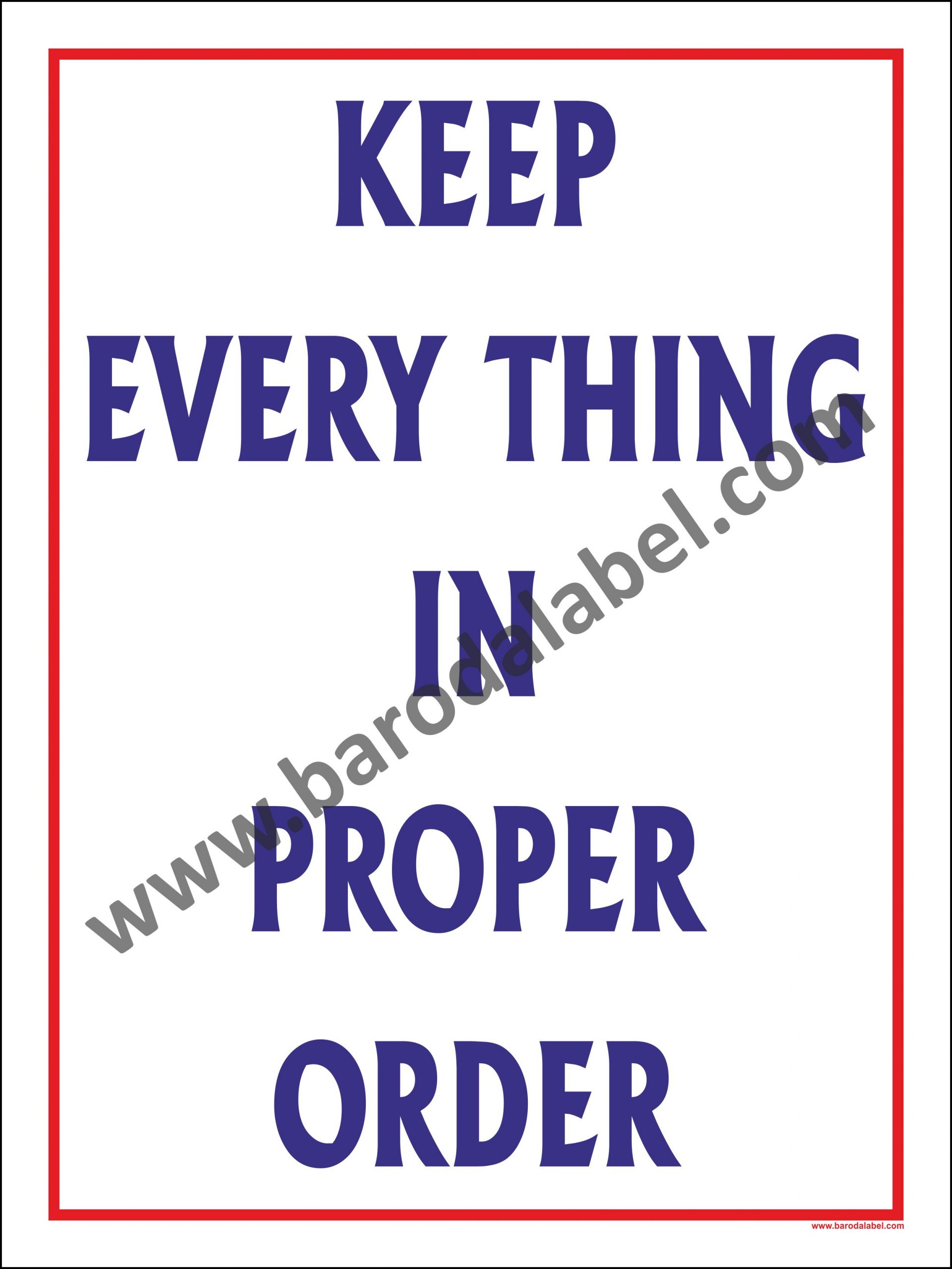 KEEP EVERYTHING IN PROPER ORDER Vinyl printed sticker, Digitally printed available with or without lamination film pasted on 5 mm thick PVC sunboard or 3 mm thick ACP (Aluminum Composite Panel)