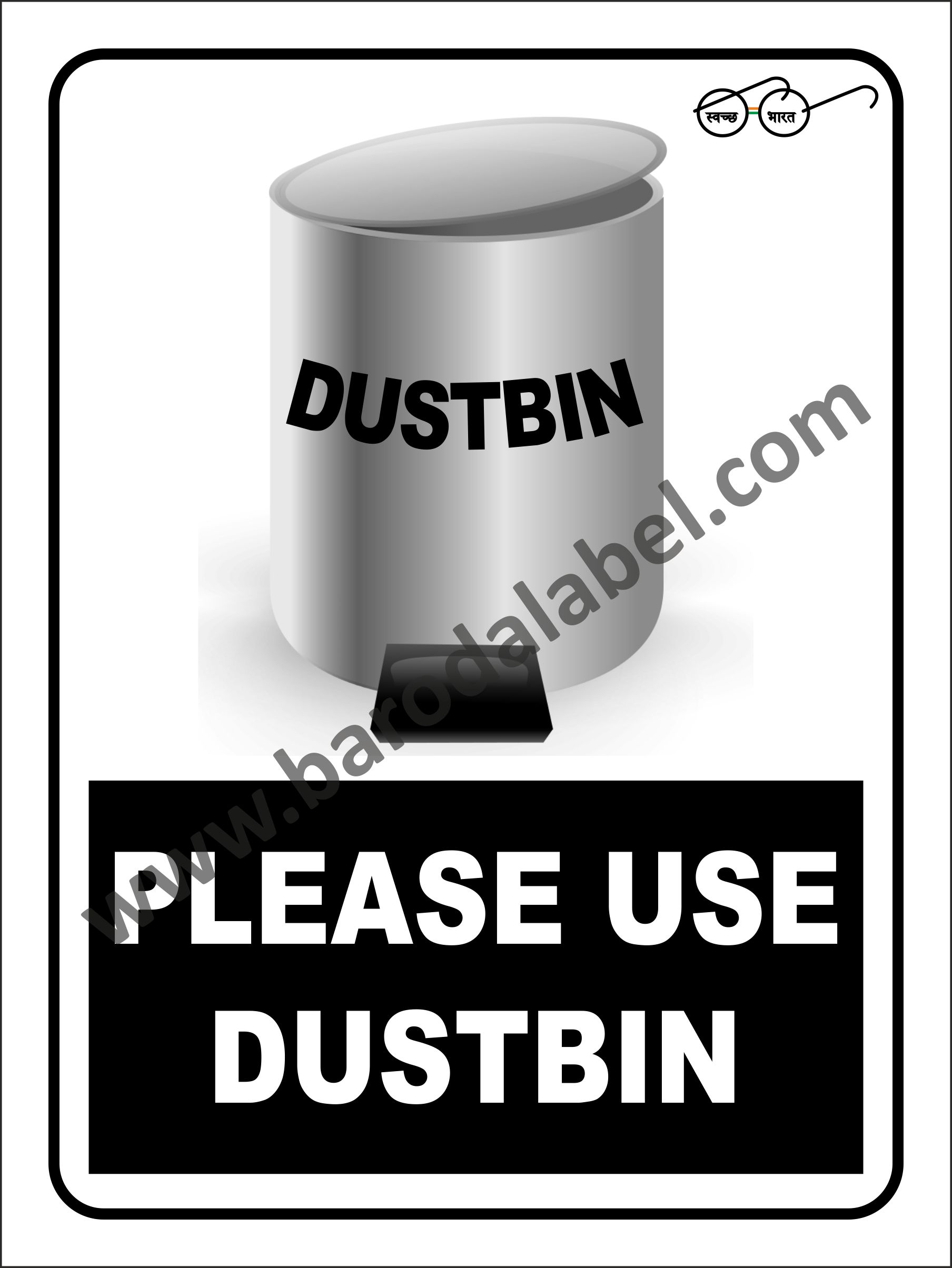 PLEASE USE DUSTBIN Vinyl printed sticker, Digitally printed available with or without lamination film pasted on 5 mm thick PVC sunboard or 3 mm thick ACP (Aluminum Composite Panel) Sheet. Sunboard signage with 4 eyelets or ACP signage with 4 holes provided for fixing.