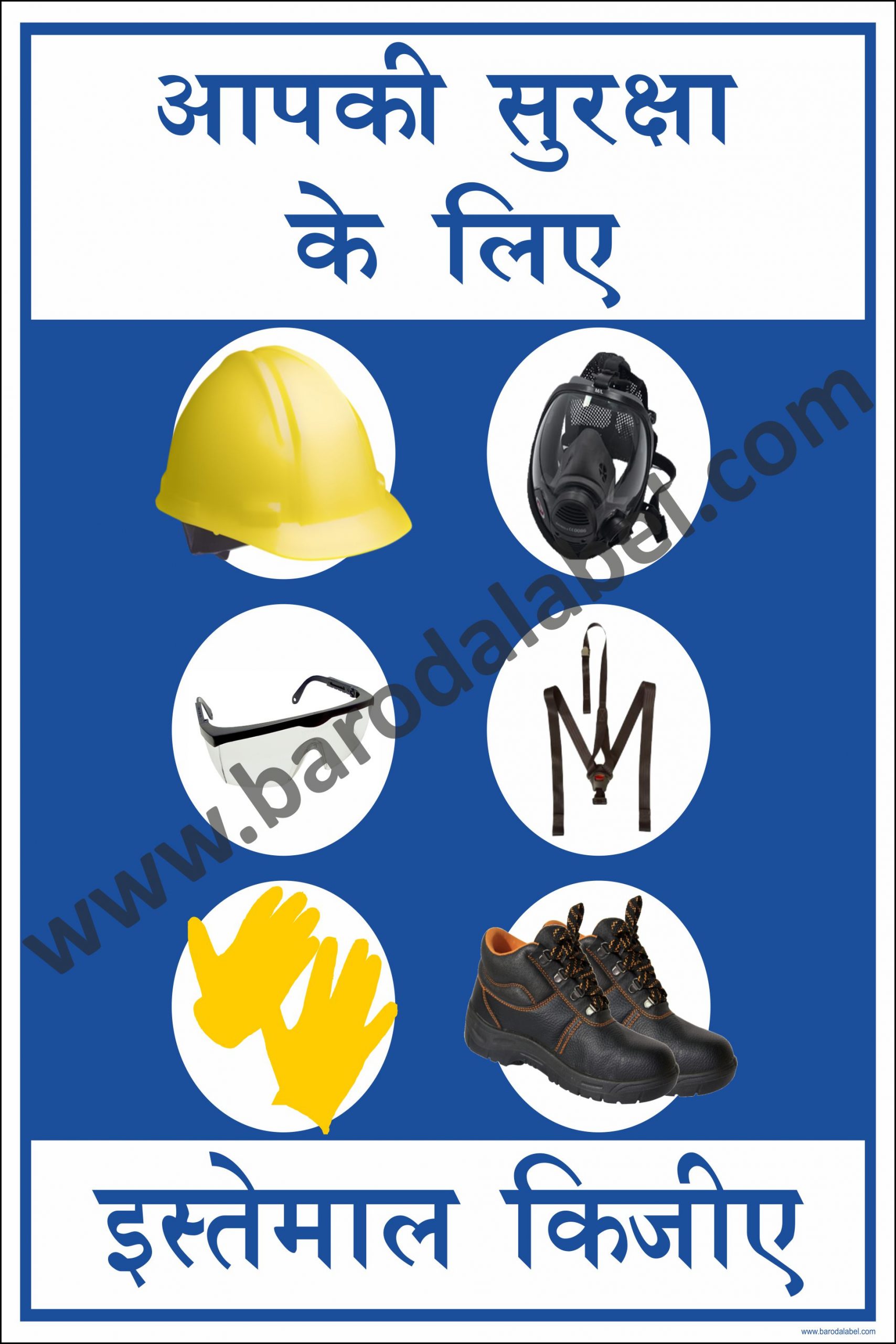AAPKI SURKSHA KE LIYE ISTEMAL KIJIYE (HINDI) Vinyl printed sticker, Digitally printed available with or without lamination film pasted on 5 mm thick PVC Sunboard or 3 mm thick ACP Sheet. Sunboard signage with 4 eyelets or ACP signage with 4 holes provided for fixing.