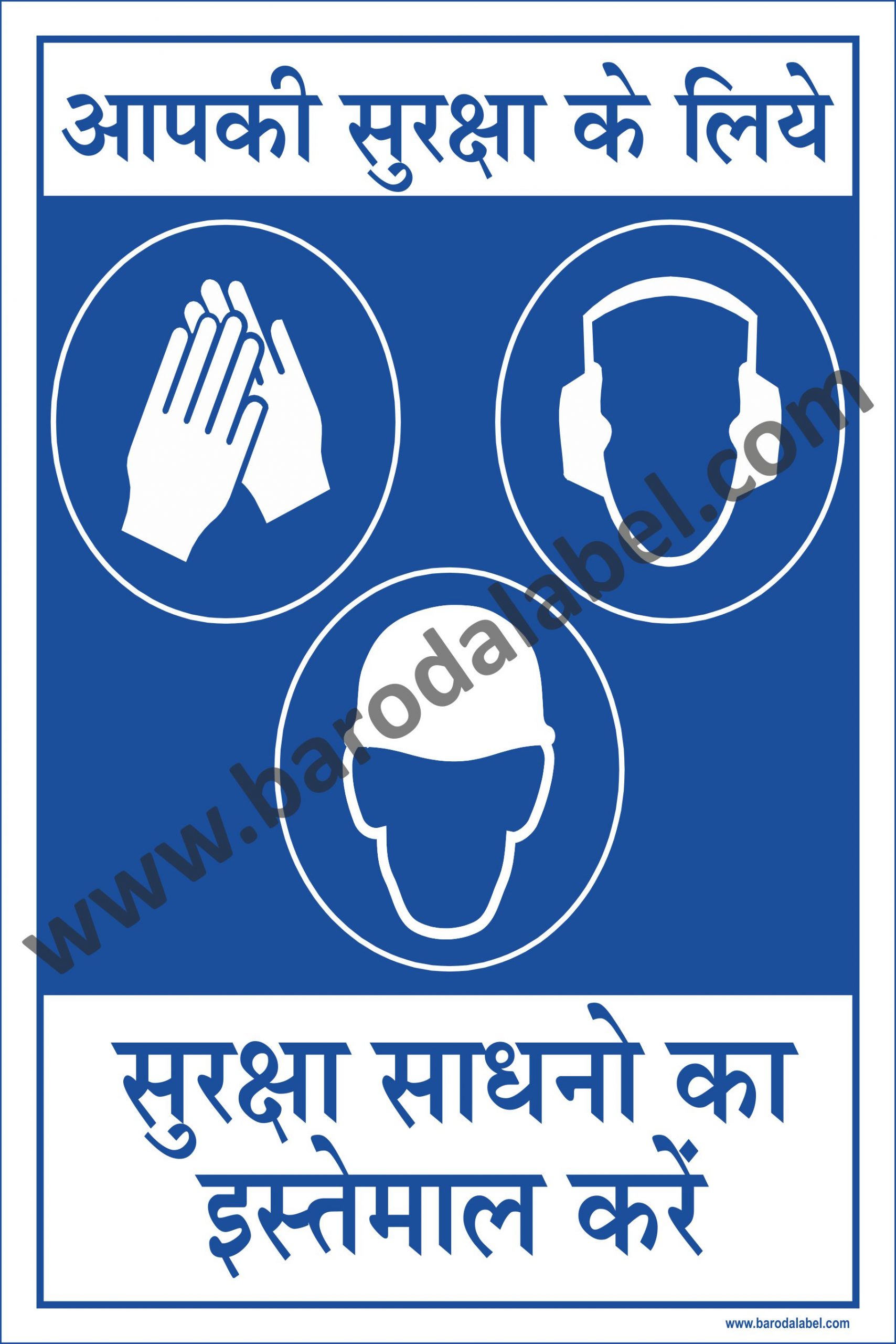 AAPKI SURKSHA KE LIYE, SURKSHA SADHANO KA ISTEMAL KARE.(HINDI) Vinyl printed sticker, Digitally printed available with or without lamination film pasted on 5 mm thick PVC Sunboard or 3 mm thick ACP Sheet.Sunboard signage with 4 eyelets or ACP signage with 4 holes provided for fixing.