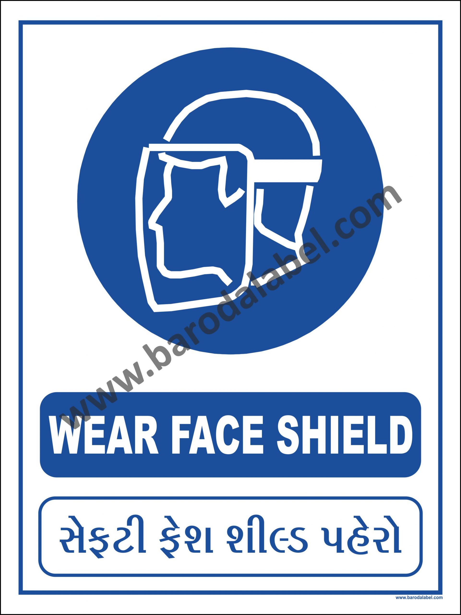 WEAR FACE SHIELD Vinyl printed sticker, Digitally printed available with or without lamination film pasted on 5 mm thick PVC Sunboard or 3 mm thick ACP Sheet. Sunboard signage with 4 eyelets or ACP signage with 4 holes provided for fixing.