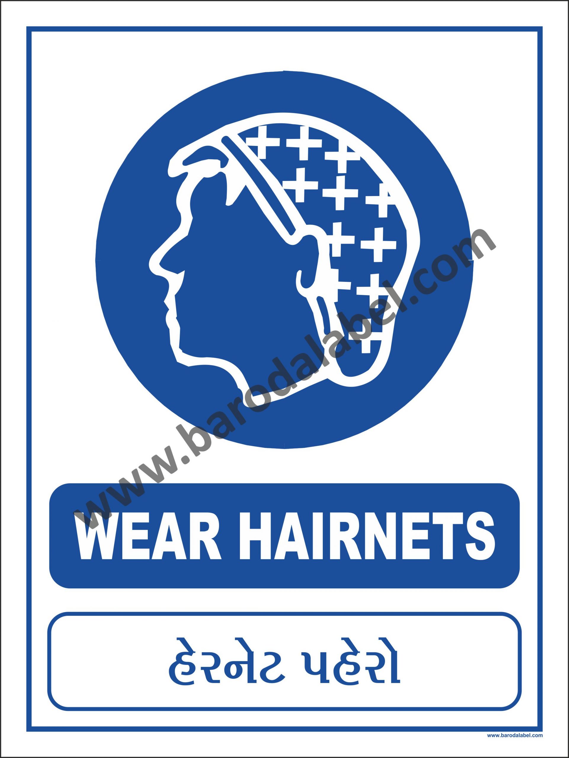 WEAR HAIRNET  Vinyl printed sticker, Digitally printed available with or without lamination film pasted on 5 mm thick PVC Sunboard or 3 mm thick ACP Sheet. Sunboard signage with 4 eyelets or ACP signage with 4 holes provided for fixing.