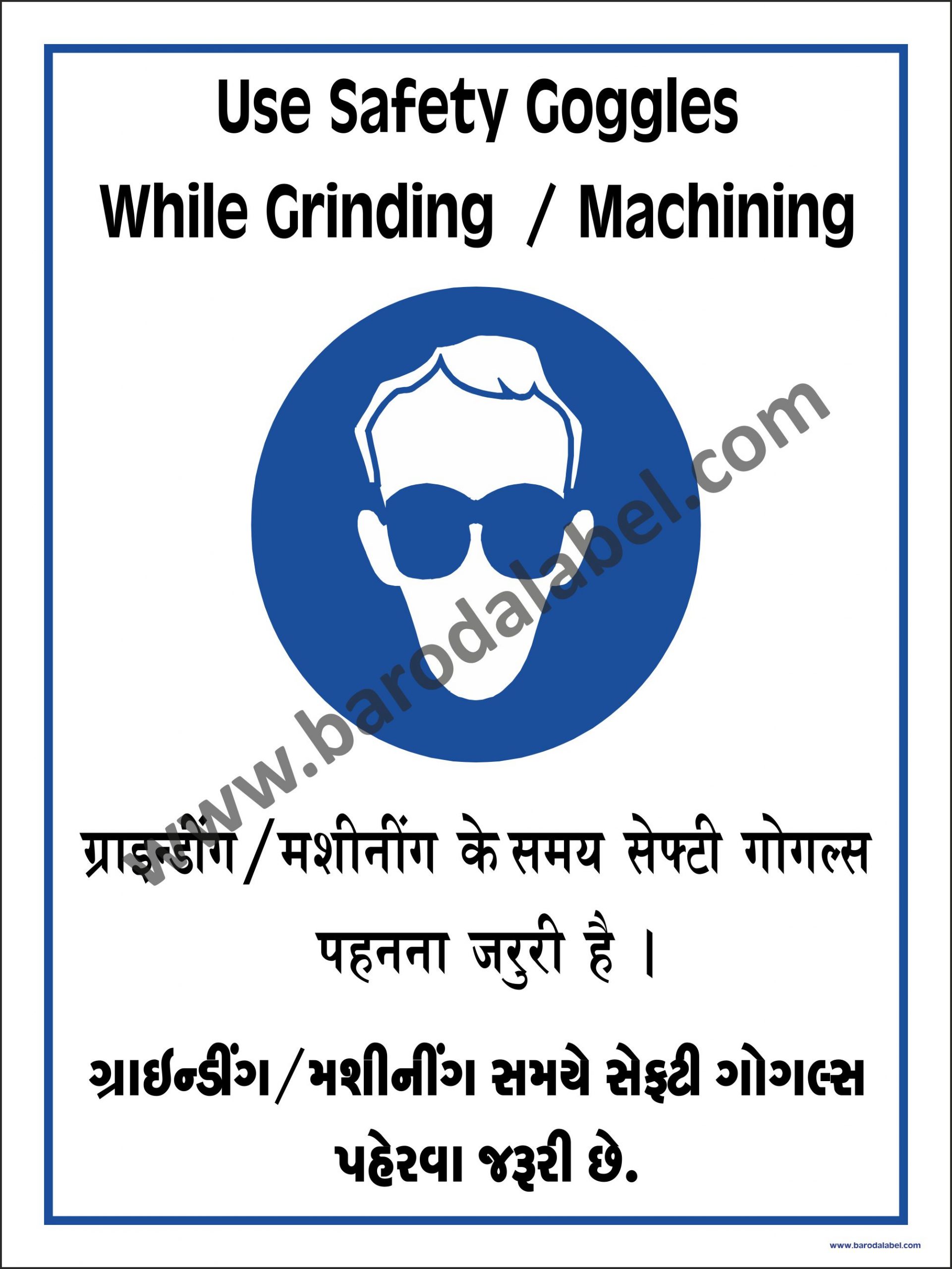 USE SAFETY GOGGLES WHILE GRINDING /MACHINING Vinyl printed sticker, Digitally printed available with or without lamination film pasted on 5 mm thick PVC Sunboard or 3 mm thick ACP Sheet.