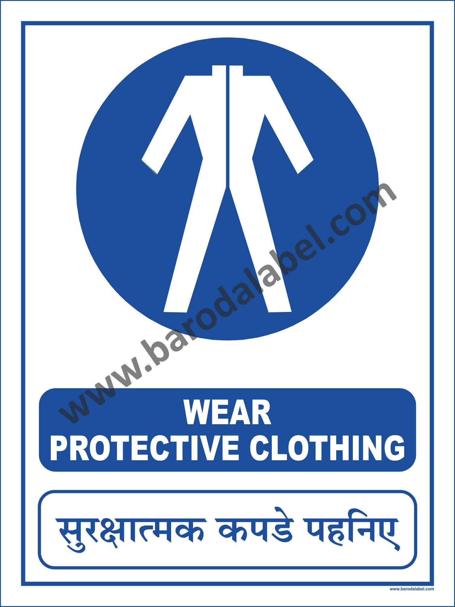 WEAR PROTECTIVE CLOTHING Vinyl printed sticker, Digitally printed available with or without lamination film pasted on 5 mm thick PVC Sunboard or 3 mm thick ACP Sheet. Sunboard signage with 4 eyelets or ACP signage with 4 holes provided for fixing.