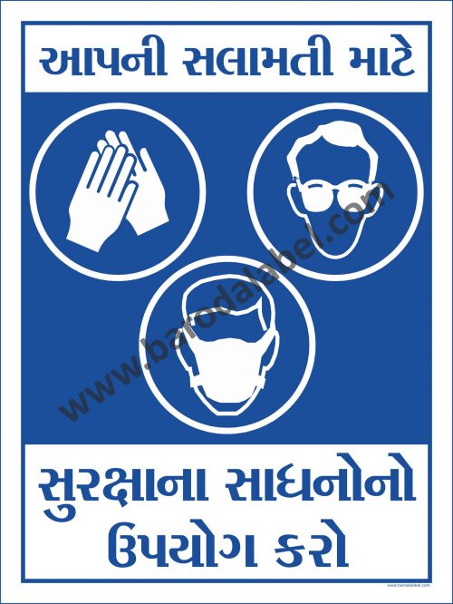 USE MASK, GOGGLES IN THIS AREA Vinyl printed sticker, Digitally printed available with or without lamination film pasted on 5 mm thick PVC Sunboard or 3 mm thick ACP Sheet. Sunboard signage with 4 eyelets or ACP signage with 4 holes provided for fixing.