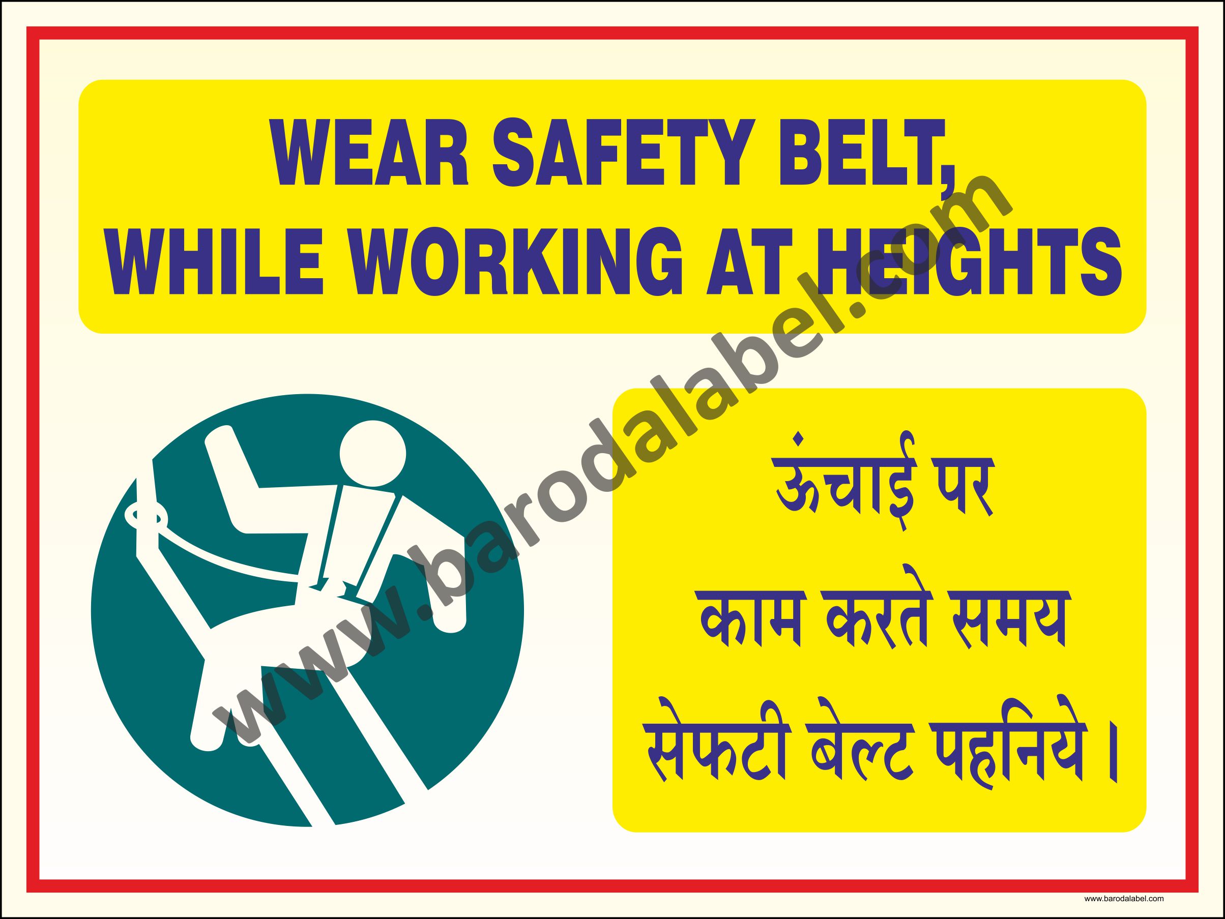 WEAR SAFETY BELT Vinyl printed sticker, Digitally printed available with or without lamination film pasted on 5 mm thick PVC Sunboard or 3 mm thick ACP Sheet. Sunboard signage with 4 eyelets or ACP signage with 4 holes provided for fixing.