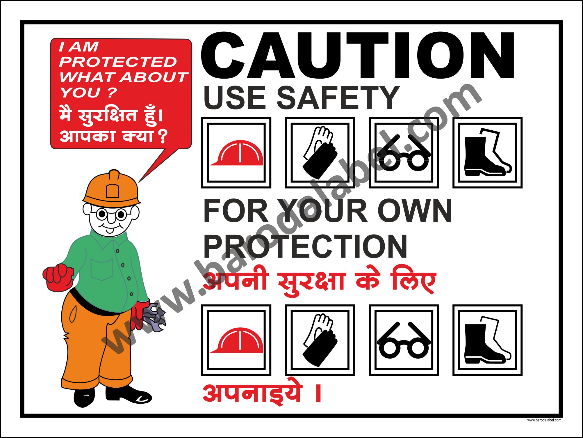 CAUTION USE SAFETY FOR YOUR OWN PROTECTION. Vinyl printed sticker, Digitally printed available with or without lamination film pasted on 5 mm thick PVC Sunboard or 3 mm thick ACP Sheet. Sunboard signage with 4 eyelets or ACP signage with 4 holes provided for fixing.