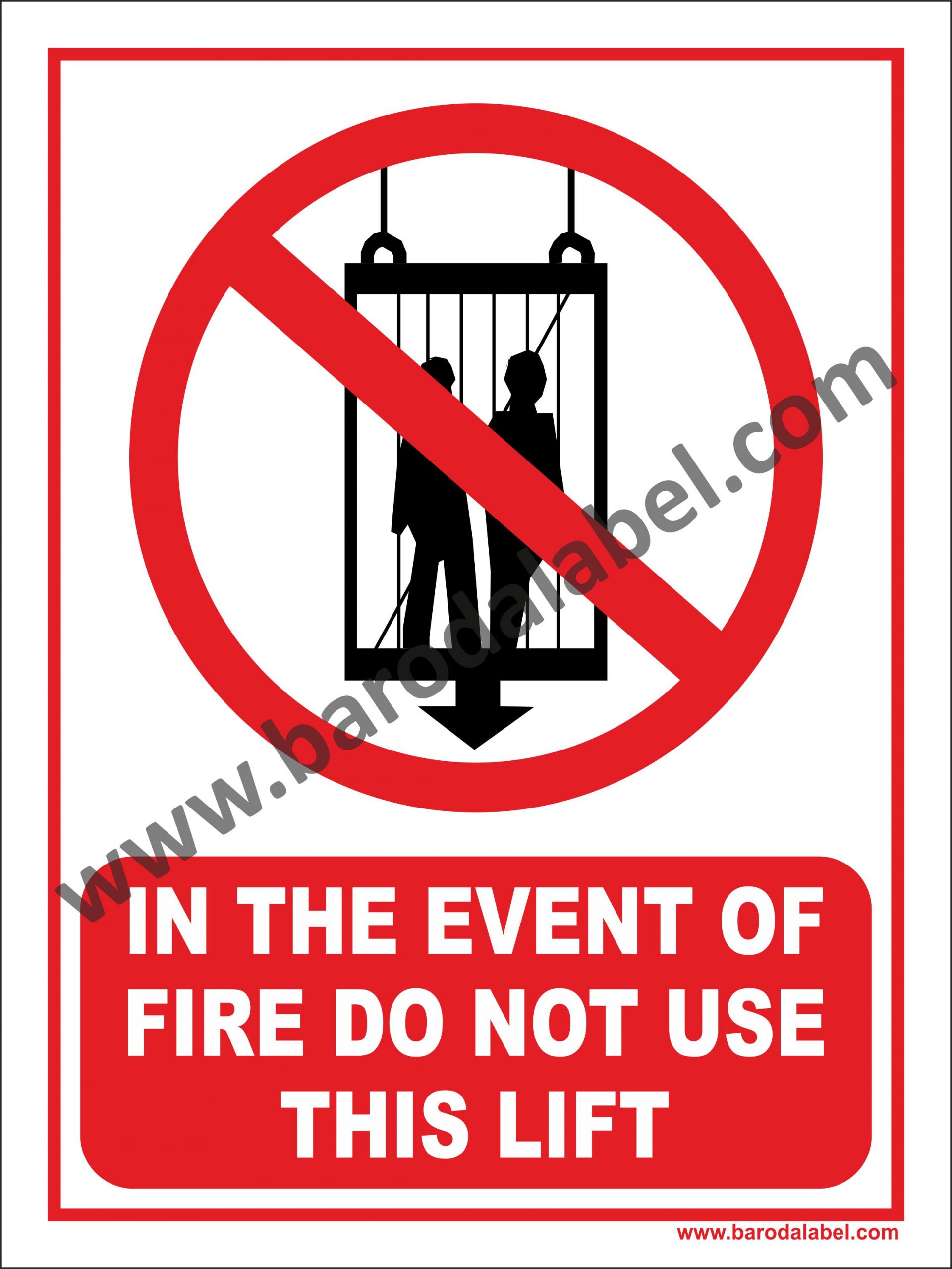 IN THE VENT OF FORE DO NOT USE THIS LIFT Vinyl printed sticker, Digitally printed available with or without lamination film pasted on 5 mm thick PVC sunboard or 3 mm thick ACP (Aluminum Composite Panel)