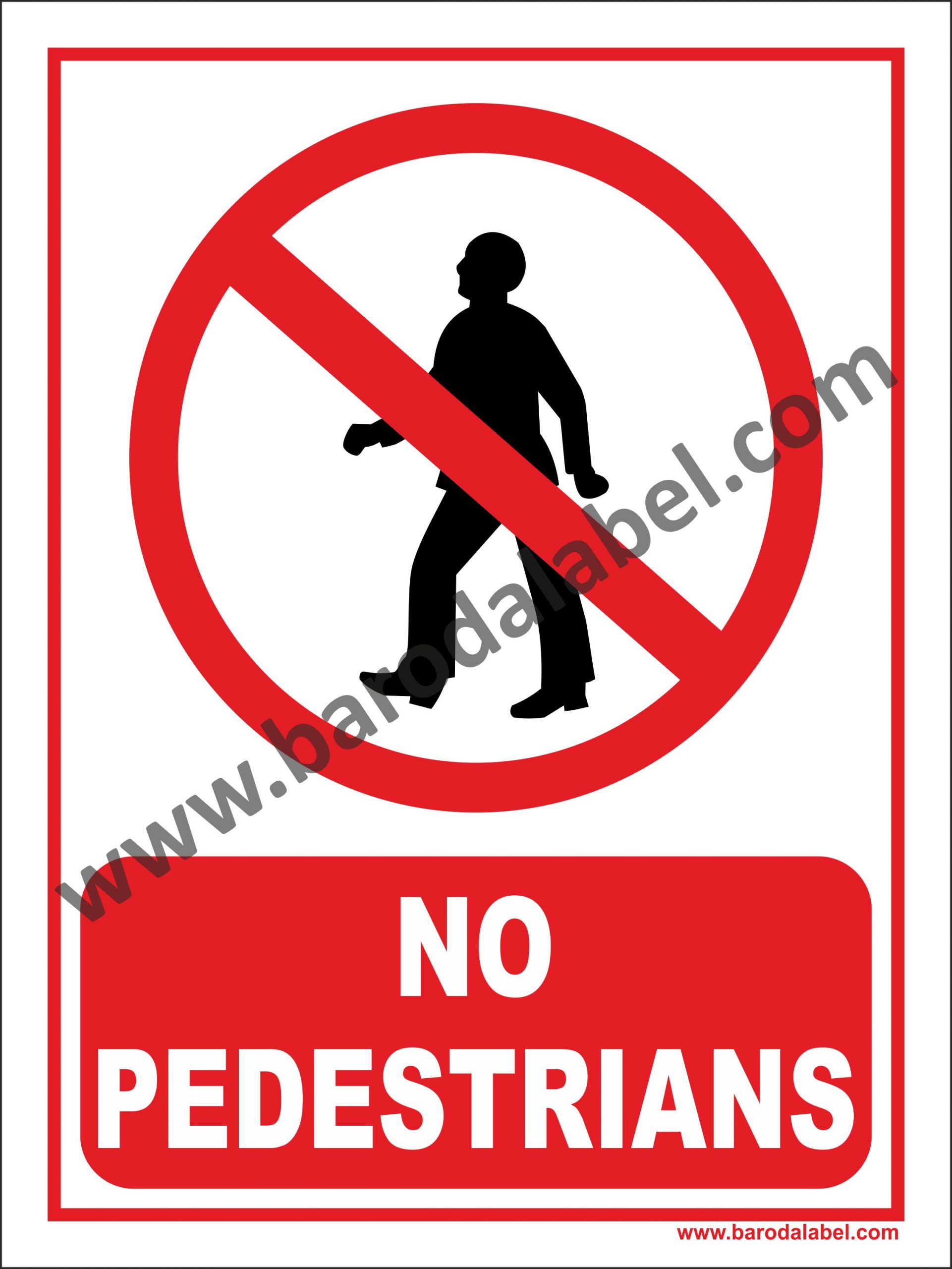 NO PEDESTRIALS Vinyl printed sticker, Digitally printed available with or without lamination film pasted on 5 mm thick PVC sunboard or 3 mm thick ACP (Aluminum Composite Panel) Sheet. Sunboard signage with 4 eyelets or ACP signage with 4 holes provided for fixing.