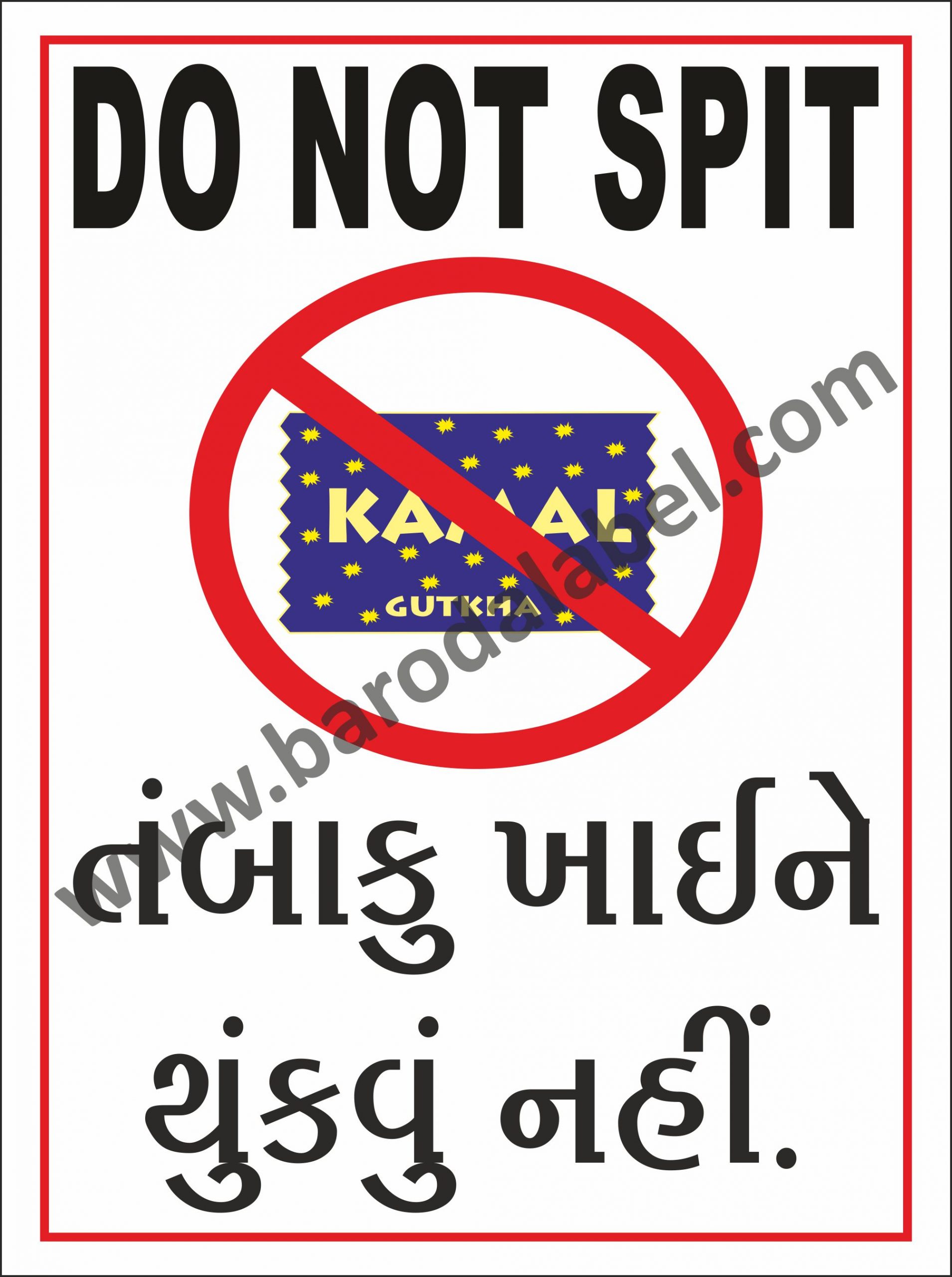 DO NOT SPIT Vinyl printed sticker, Digitally printed available with or without lamination film pasted on 5 mm thick PVC sunboard or 3 mm thick ACP (Aluminum Composite Panel) Sheet. Sunboard signage with 4 eyelets or ACP signage with 4 holes provided for fixing.
