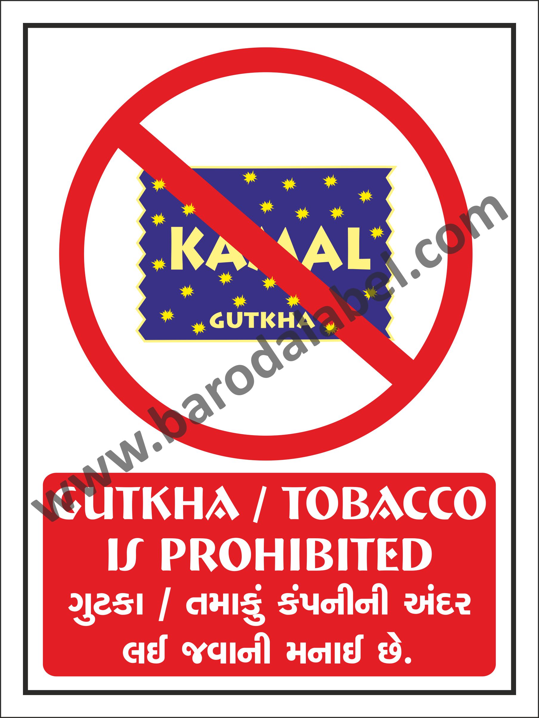 GUTKHA/TOBACCO IS PROHIBITED Vinyl printed sticker, Digitally printed available with or without lamination film pasted on 5 mm thick PVC sunboard or 3 mm thick ACP (Aluminum Composite Panel)