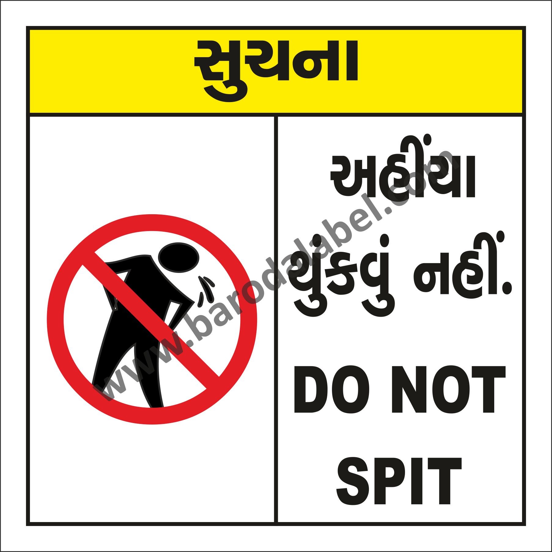 DO NOT SPIT Vinyl printed sticker, Digitally printed available with or without lamination film pasted on 5 mm thick PVC sunboard or 3 mm thick ACP (Aluminum Composite Panel) Sheet. Sunboard signage with 4 eyelets or ACP signage with 4 holes provided for fixing.