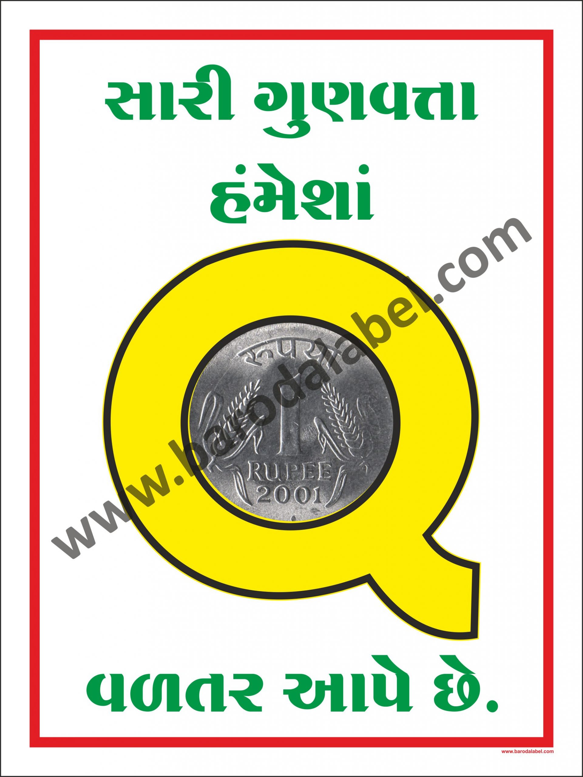 SARI GUNVATTA HAMESHA VADTAR AAPE CHEE.(Gujarati) Vinyl printed sticker, Digitally printed available with or without lamination film pasted on 5 mm thick PVC sunboard or 3 mm thick ACP (Aluminum Composite Panel) Sheet. Sunboard signage with 4 eyelets or ACP signage with 4 holes provided for fixing.