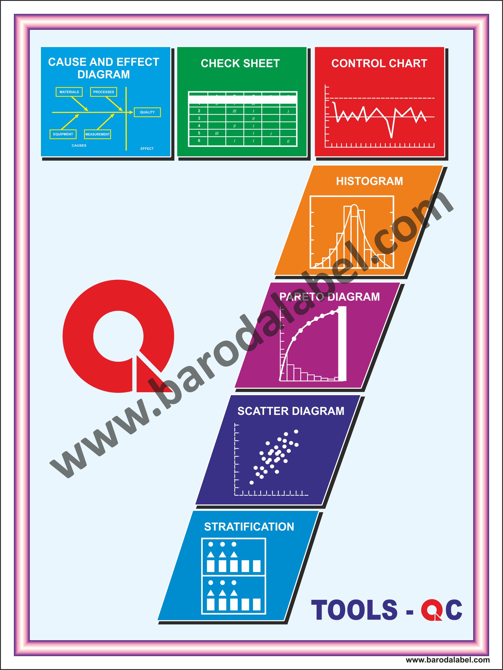 7 TOOLS – QC Vinyl printed sticker, Digitally printed available with or without lamination film pasted on 5 mm thick PVC sunboard or 3 mm thick ACP (Aluminum Composite Panel) Sheet. Sunboard signage with 4 eyelets or ACP signage with 4 holes provided for fixing.