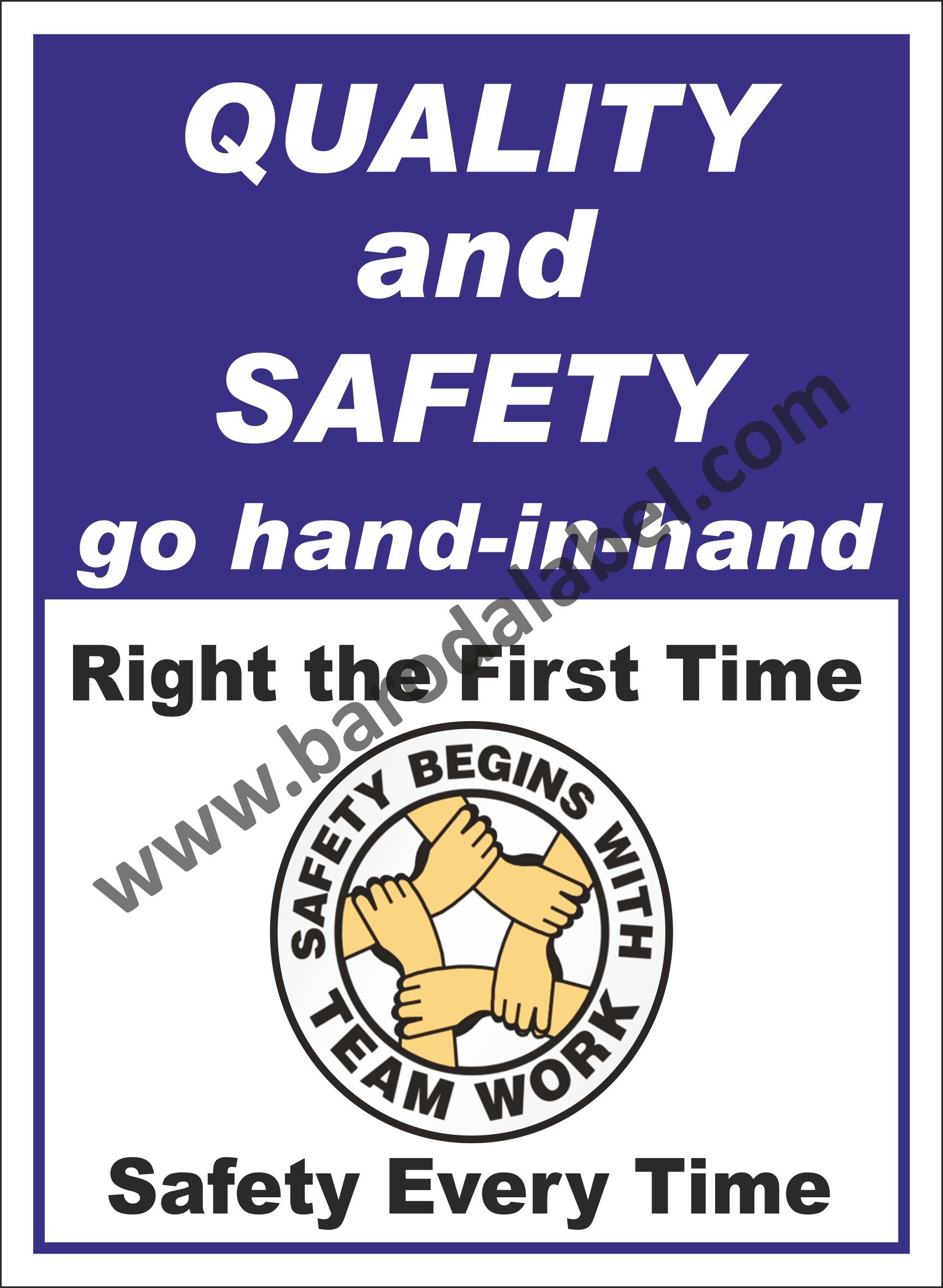 Quality and Safety go hand – in – hand. Vinyl printed sticker, Digitally printed available with or without lamination film pasted on 5 mm thick PVC sunboard or 3 mm thick ACP (Aluminum Composite Panel) Sheet. Sunboard signage with 4 eyelets or ACP signage with 4 holes provided for fixing.
