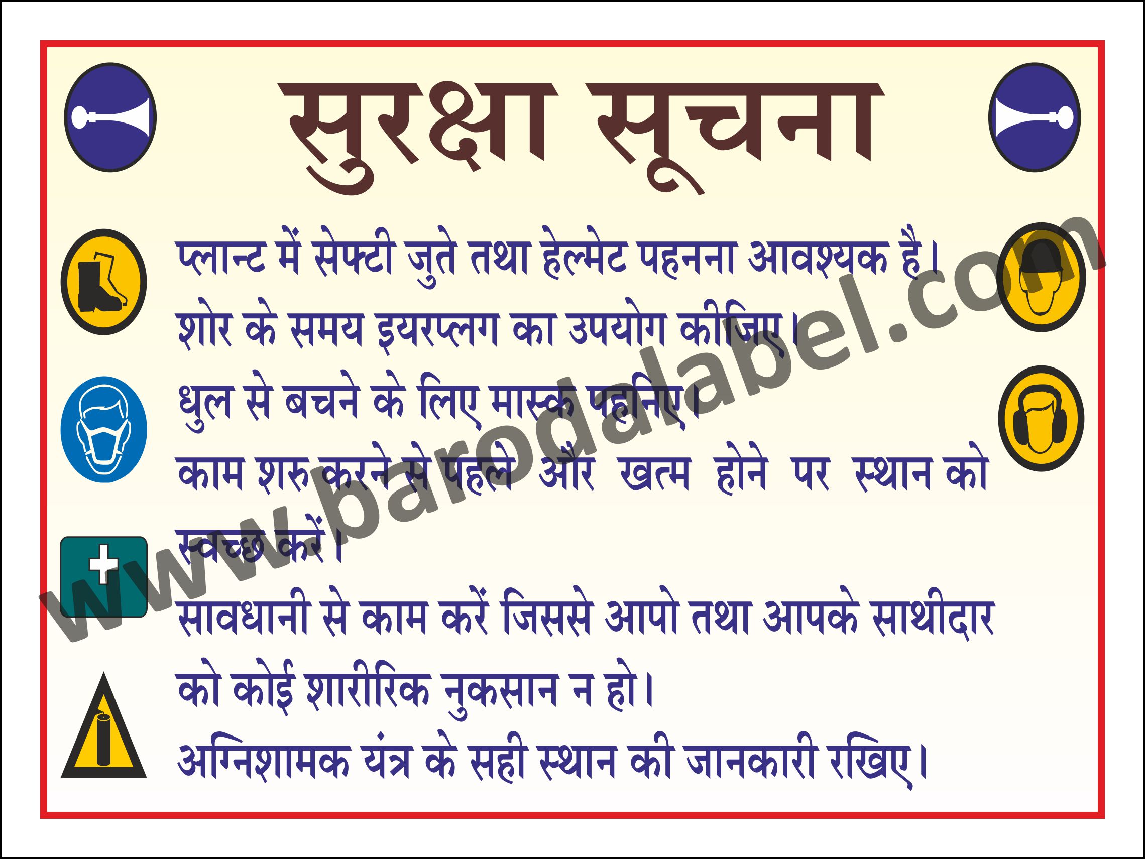 SURKSHA SUCHNA| (Hindi) Vinyl printed sticker, Digitally printed available with or without lamination