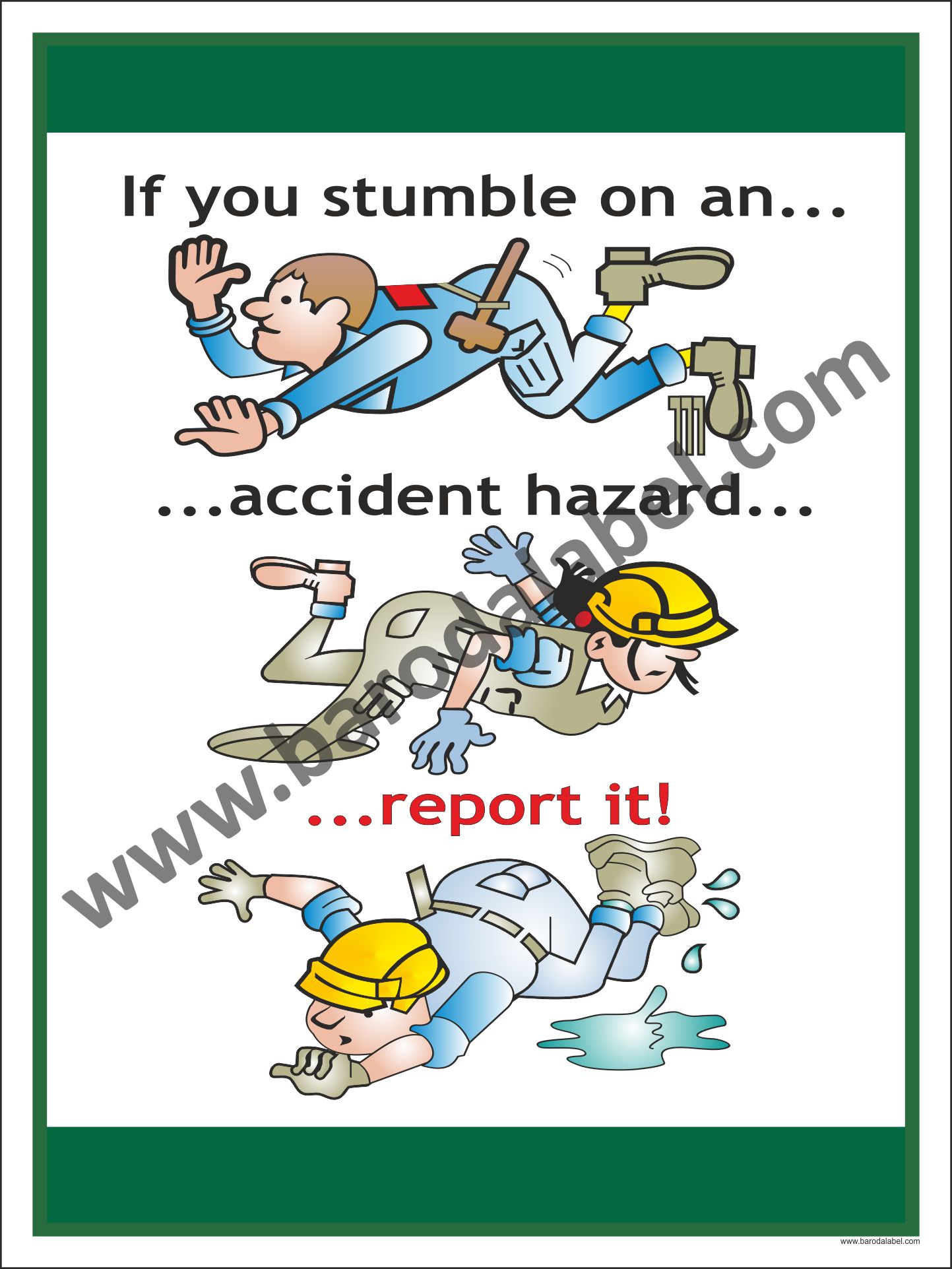 IF YOU STUMBLE ON AN ACCIDENT HAZARD REPORT IT! Vinyl printed sticker, Digitally printed available with or without lamination film pasted on 5 mm thick PVC sunboard or 3 mm thick ACP (Aluminum Composite Panel) Sheet. Sunboard signage with 4 eyelets or ACP signage with 4 holes provided for fixing.