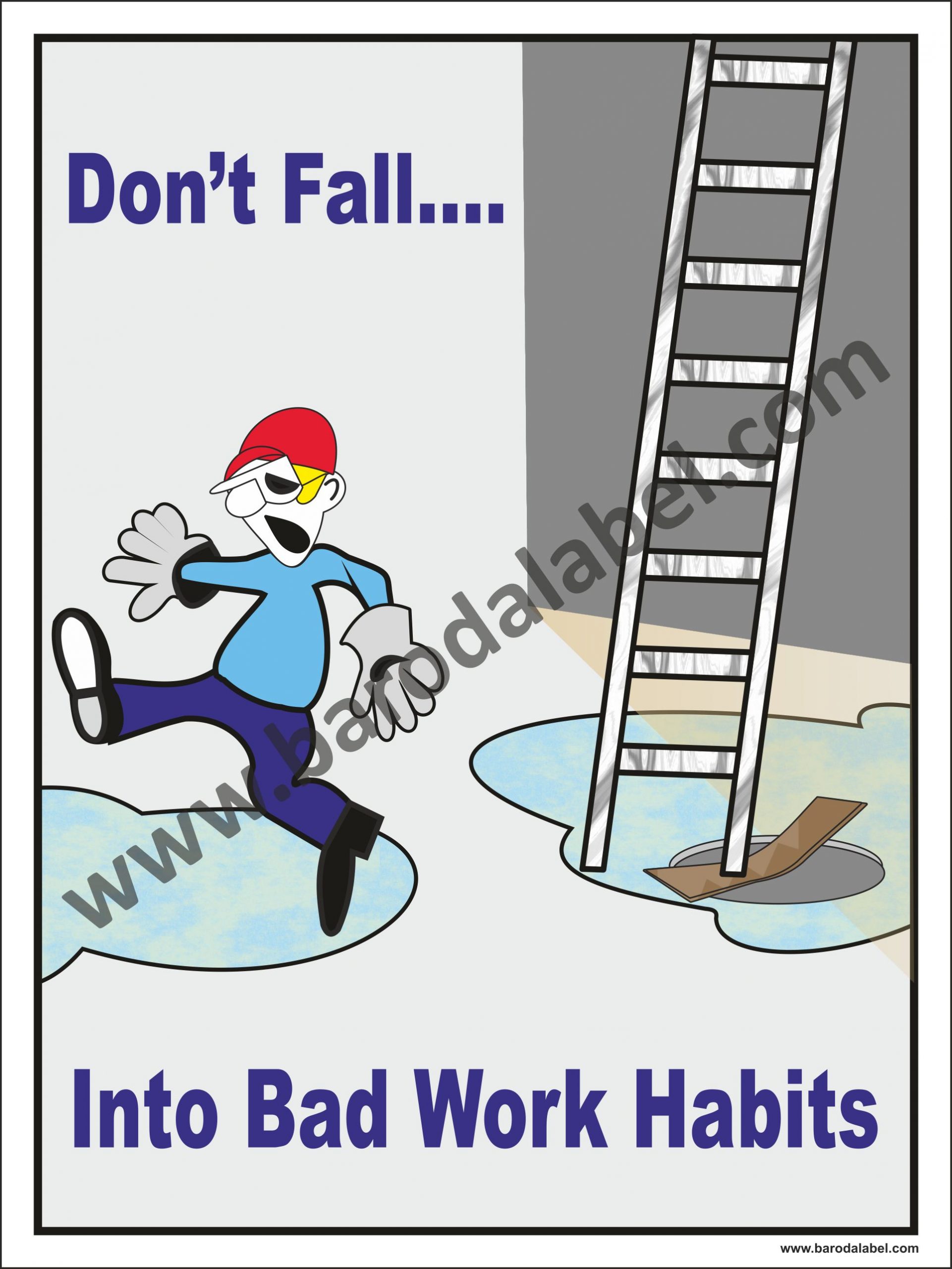DON’T FALL…. IN TO BAD WORK HABITS. Vinyl printed sticker, Digitally printed available with or without lamination film pasted on 5 mm thick PVC sunboard or 3 mm thick ACP (Aluminum Composite Panel)