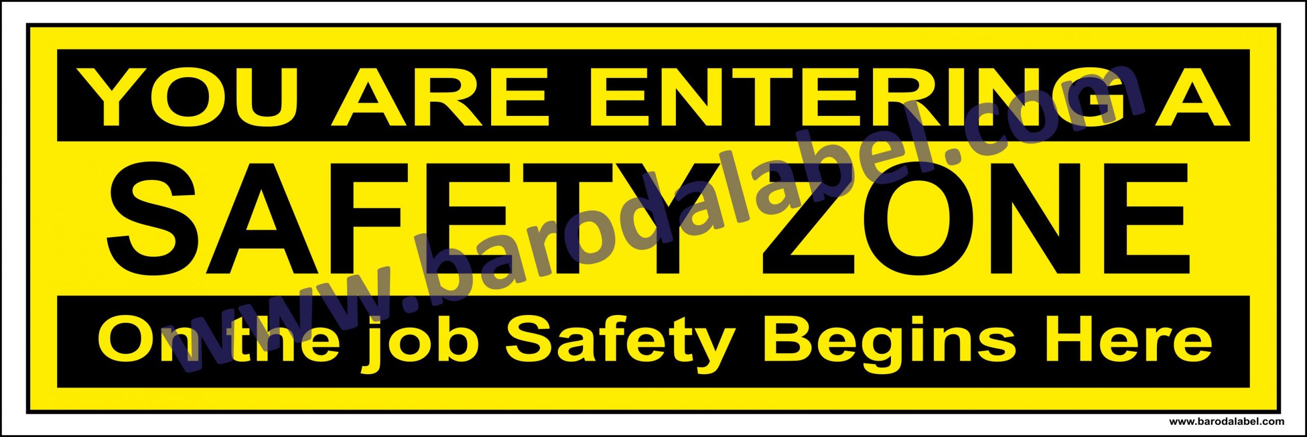 YOU ARE ENTERING A SAFETY ZONE Vinyl printed sticker, Digitally printed available with or without lamination film pasted on 5 mm thick PVC sunboard or 3 mm thick ACP (Aluminum Composite Panel) Sheet. Sunboard signage with 4 eyelets or ACP signage with 4 holes provided for fixing.