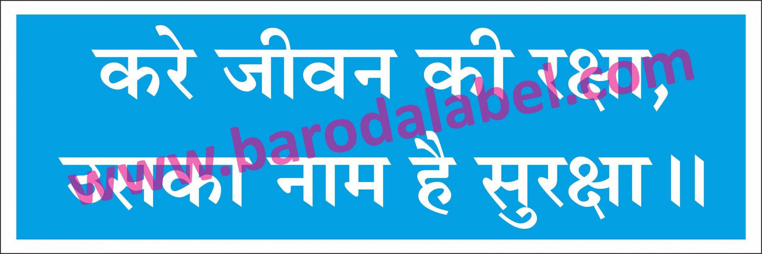 Kare Jivan Ki Raksha, Uska Naam Haih Suraksha (Hindi) Vinyl printed sticker, Digital printed available with or without lamination film pasted on 5 mm thick PVC sunboard or 3 mm thick ACP (Aluminium Composite Panel) Sheet. Sunboard signage with 4 eyelets or ACP signage with 4 holes provided for fixing.