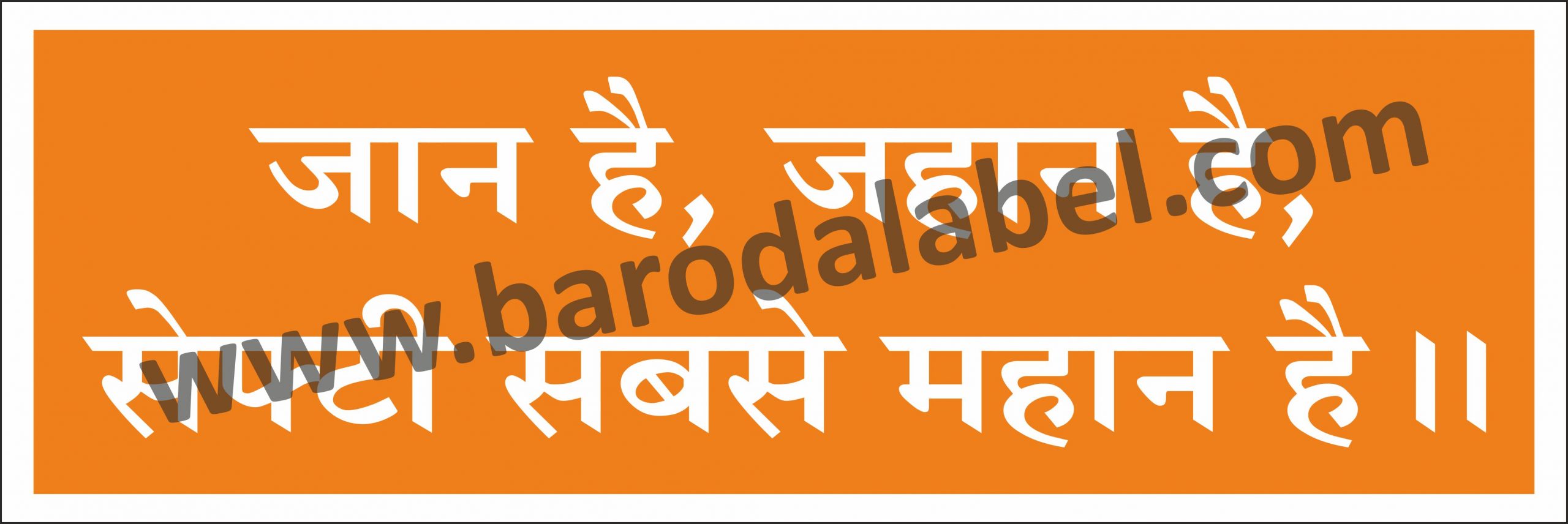 Jaan Haih, Jahan Haih, Safety Sabse Mahan Haih (Hindi) Vinyl printed sticker, Digital printed available with or without lamination film pasted on 5 mm thick PVC sunboard or 3 mm thick ACP (Aluminium Composite Panel) Sheet. Sunboard signage with 4 eyelets or ACP signage with 4 holes provided for fixing.