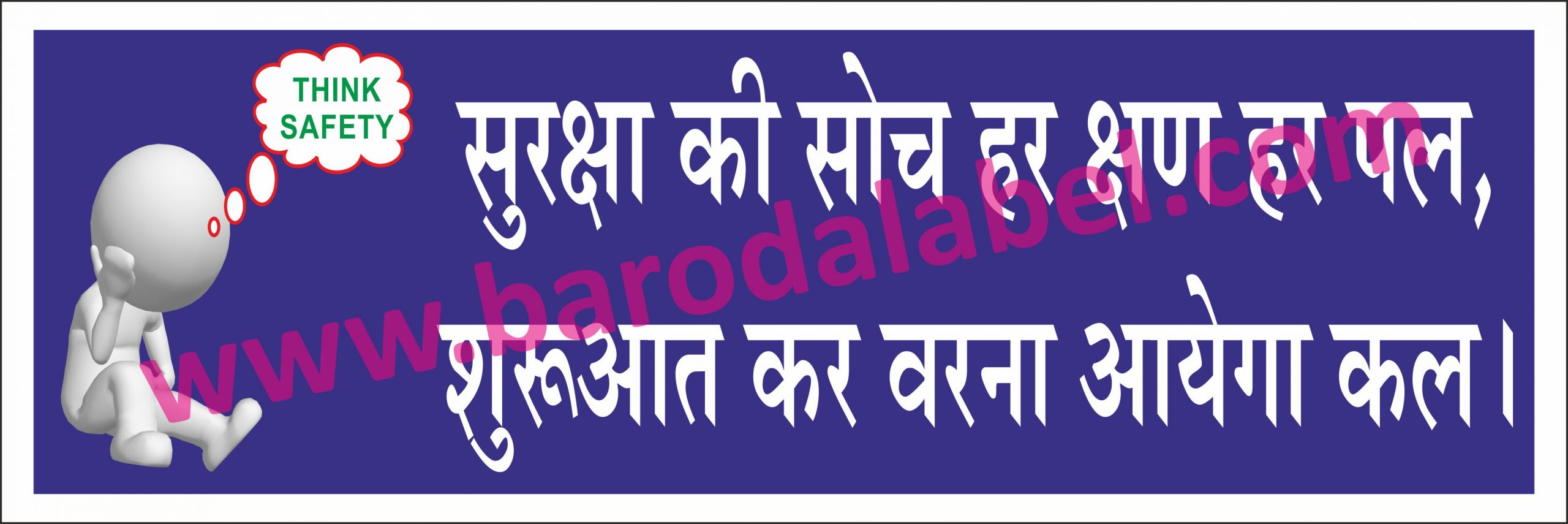 Suraksha Ki Soch Har Kshan Har Pal, Shurvat Kar Varna Ayega Kal (Hindi) Vinyl printed sticker, Digital printed available with or without lamination film pasted on 5 mm thick PVC sunboard or 3 mm thick ACP (Aluminium Composite Panel) Sheet. Sunboard signage with 4 eyelets or ACP signage with 4 holes provided for fixing.