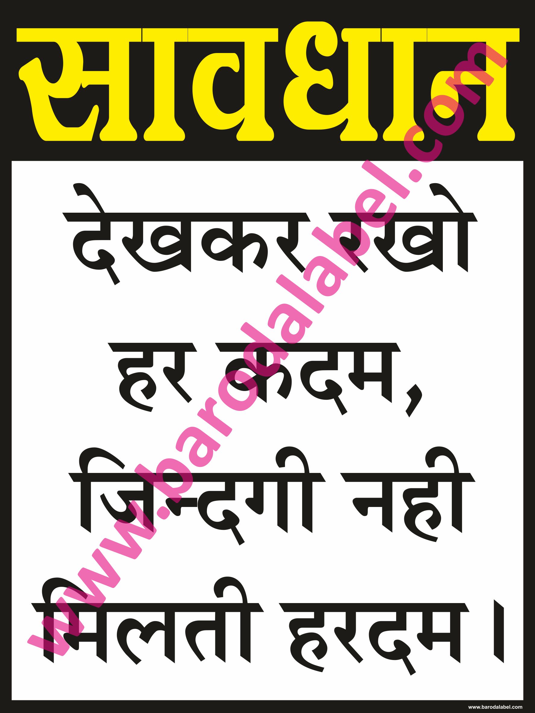 Dekhkar Rakho Har Kadam, Zindagi Nahi Milti Hardam (Hindi) Vinyl printed sticker, Digital printed available with or without lamination film pasted on 5 mm thick PVC sunboard or 3 mm thick ACP (Aluminium Composite Panel) Sheet. Sunboard signage with 4 eyelets or ACP signage with 4 holes provided for fixing.