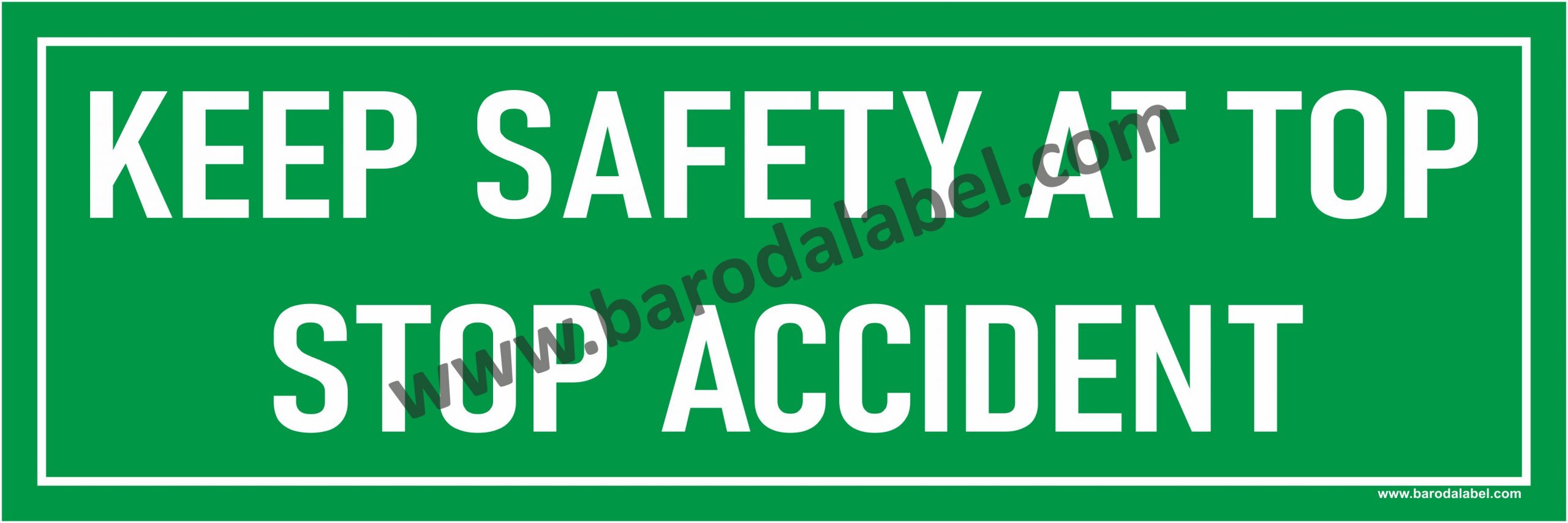 KEEP SAFETY AT TOP SIOP ACCIDENT Vinyl printed sticker, Digitally printed available with or without lamination film pasted on 5 mm thick PVC sunboard or 3 mm thick ACP (Aluminum Composite Panel) Sheet. Sunboard signage with 4 eyelets or ACP signage with 4 holes provided for fixing.