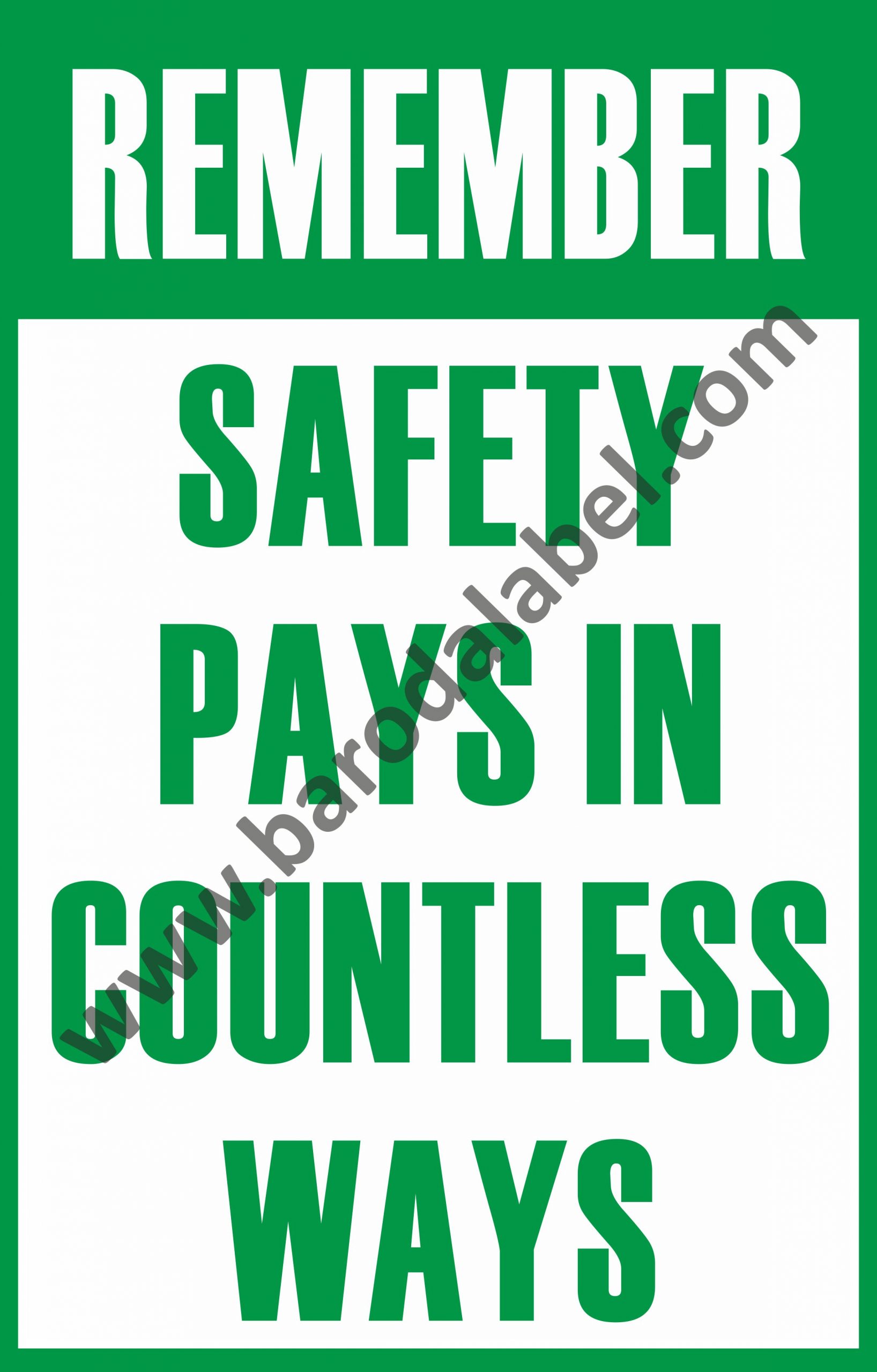 REMEMBER SAFETY PAYS IN COUNTLESS WAYS Vinyl printed sticker, Digitally printed available with or without lamination film pasted on 5 mm thick PVC sunboard or 3 mm thick ACP (Aluminum Composite Panel) Sheet. Sunboard signage with 4 eyelets or ACP signage with 4 holes provided for fixing.