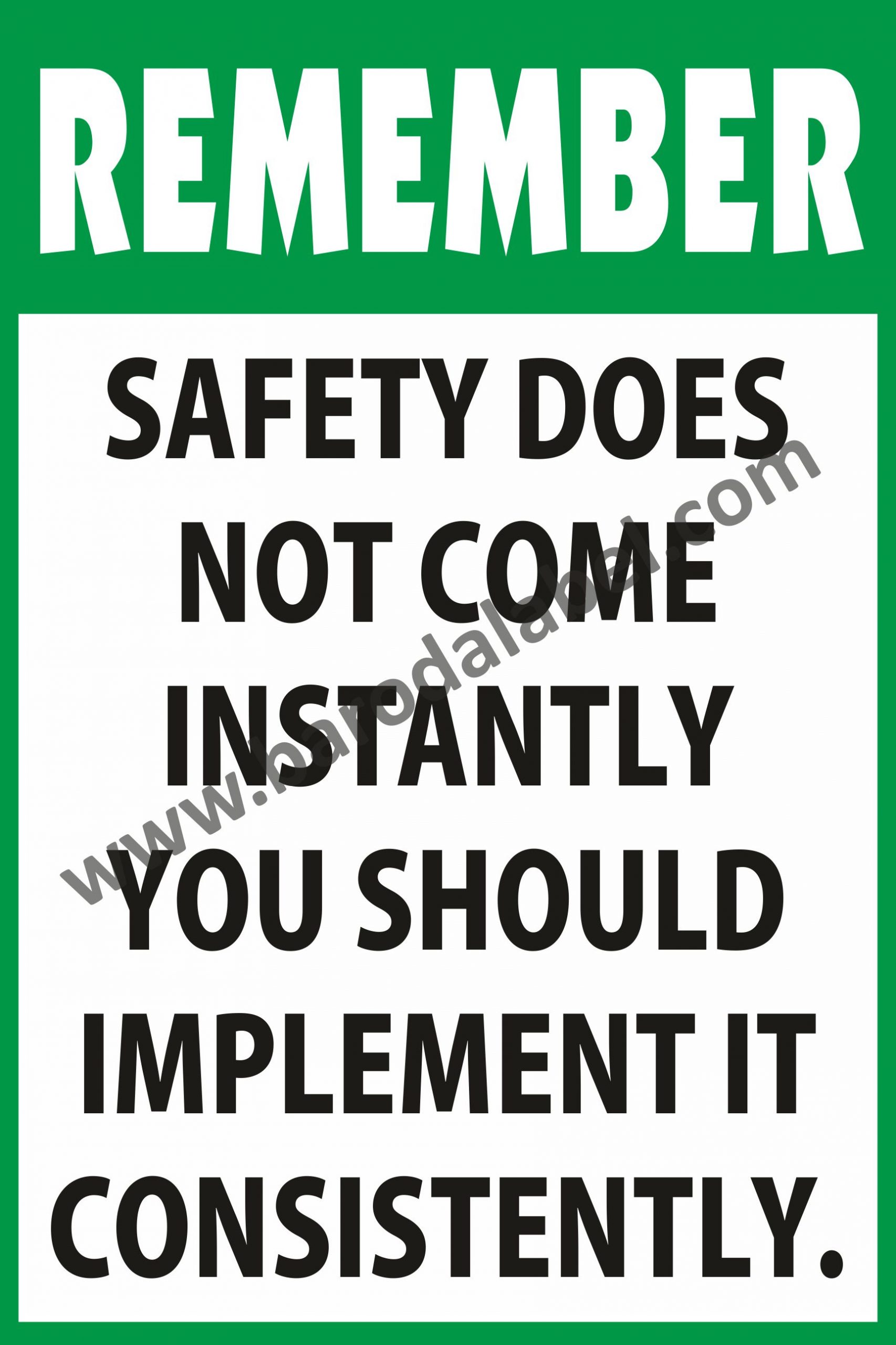 Safety Does Not Come Instantly, You Should Implement It Consistently Vinyl printed sticker, Digital printed available with or without lamination film pasted on 5 mm thick PVC sunboard or 3 mm thick ACP (Aluminium Composite Panel) Sheet. Sunboard signage with 4 eyelets or ACP signage with 4 holes provided for fixing.