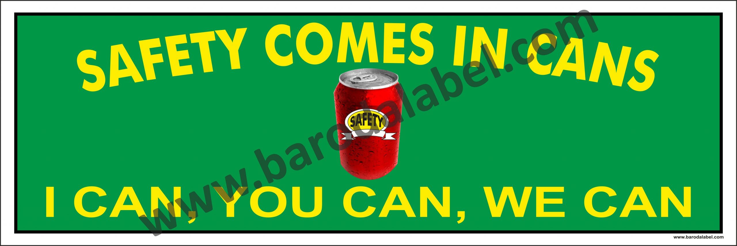 Safety Comes In Cans : I Can,You Can,We Can Vinyl printed sticker, Digital printed available with or without lamination film pasted on 5 mm thick PVC sunboard or 3 mm thick ACP (Aluminium Composite Panel) Sheet. Sunboard signage with 4 eyelets or ACP signage with 4 holes provided for fixing.