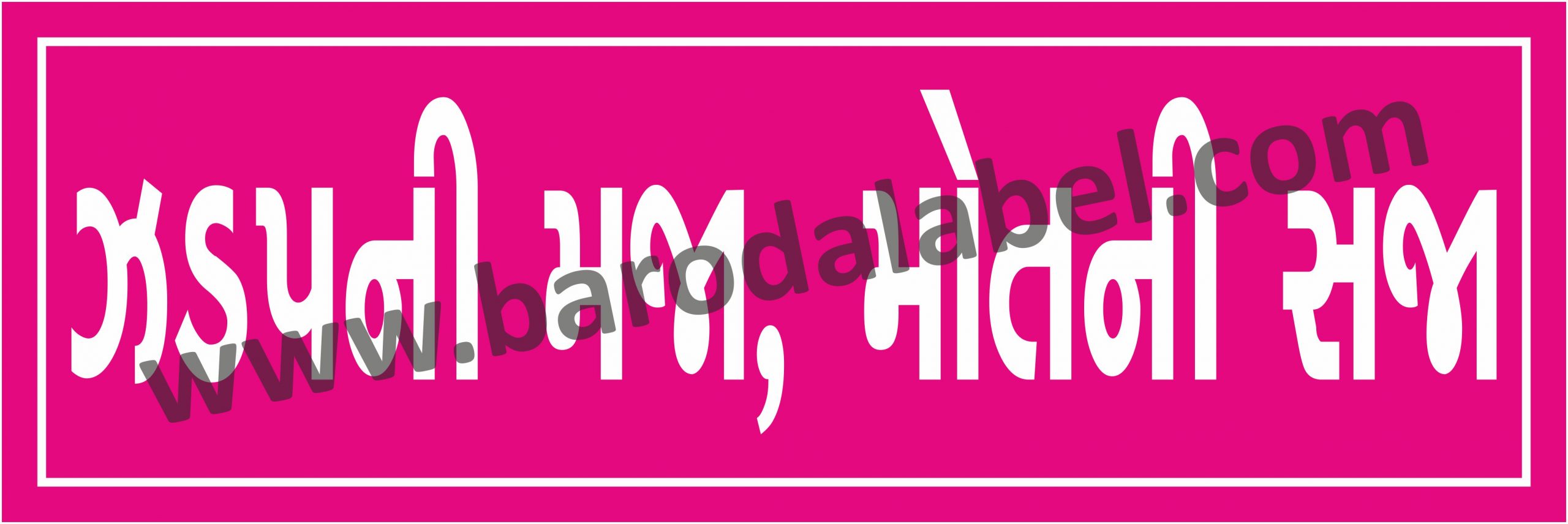 Jhadap Ni Maja, Mott Ni Saja (Gujarati) Vinyl printed sticker, Digital printed available with or without lamination film pasted on 5 mm thick PVC sunboard or 3 mm thick ACP (Aluminium Composite Panel) Sheet. Sunboard signage with 4 eyelets or ACP signage with 4 holes provided for fixing.